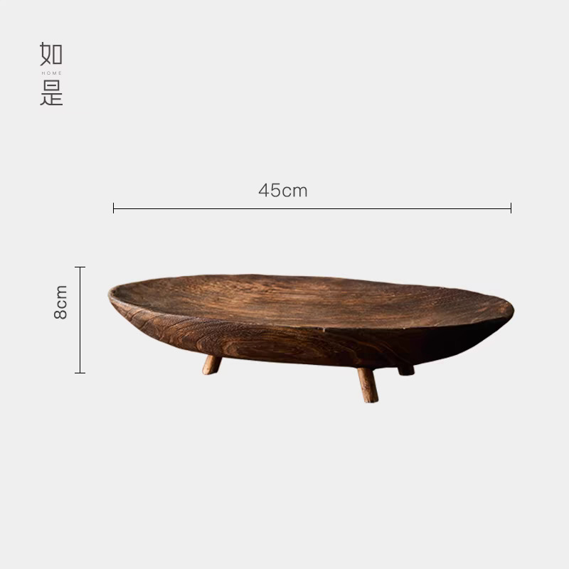 조용한 스타일 블랙 하이 피트 작은 과일 플레이트 빈티지 오래 된 마른 과일 플레이트 솔리드 우드 트레이 나무 과일 플레이트 장식품
