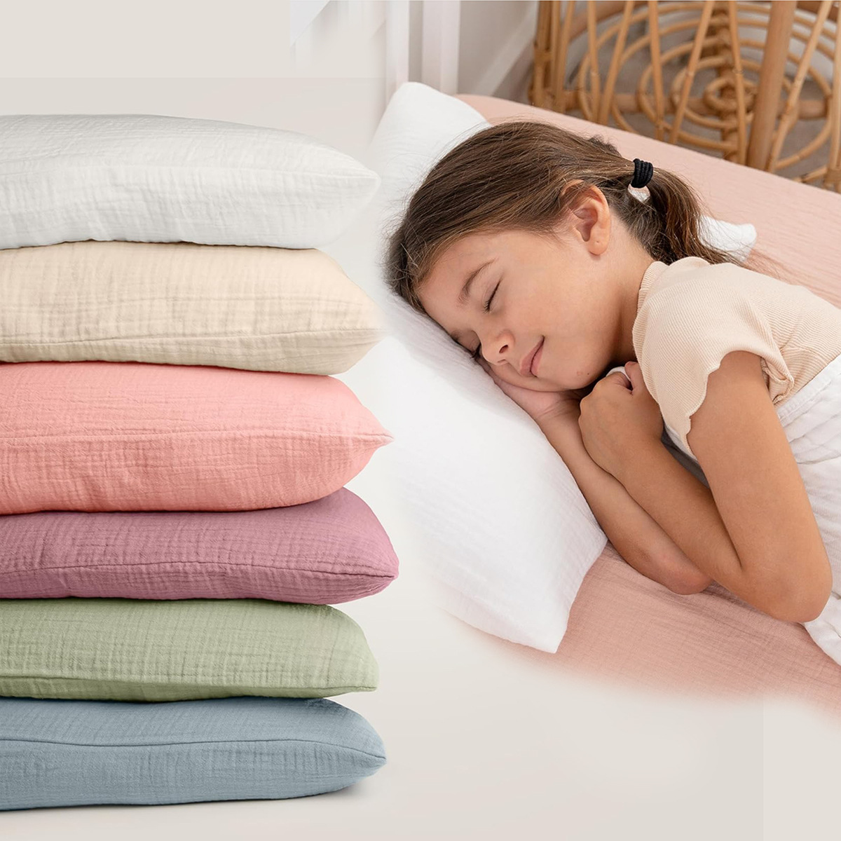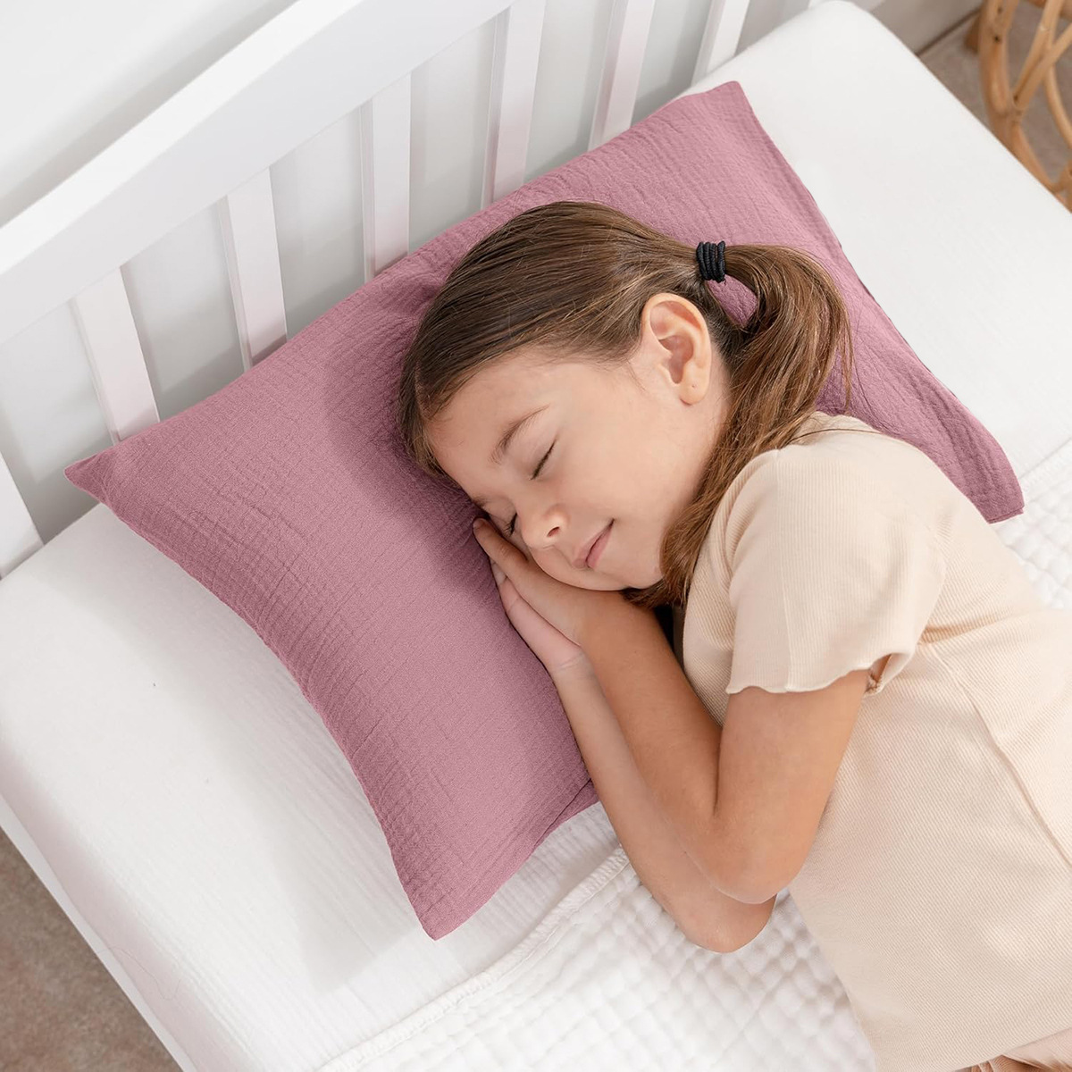 아마존 폭발성 아기 베개 수면 베개 머리띠 코튼 크레이프 베개 이동식 및 세척 가능한 통기성 땀 흡수 베개