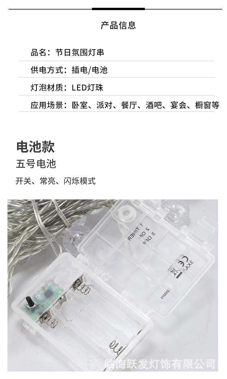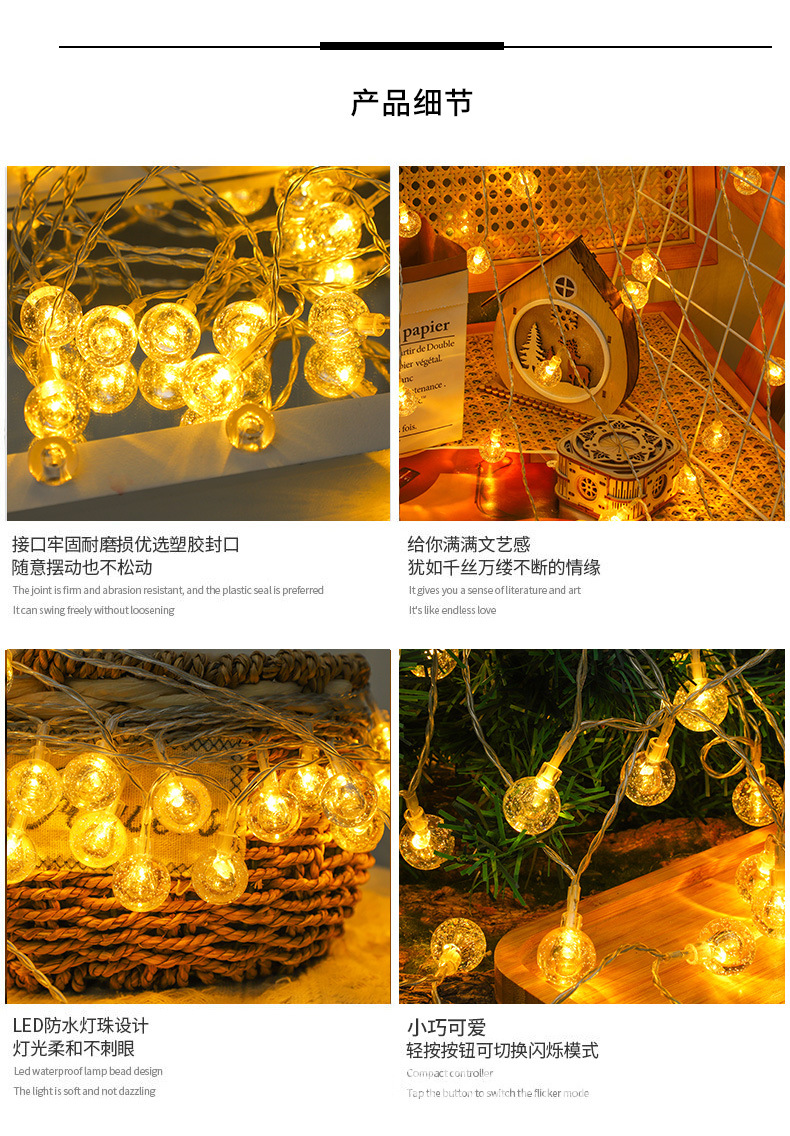 야외 캠핑 방수 led 거품 공 빛 문자열 세 기능 배터리 상자 크리스탈 볼 빛 문자열 휴일 장식 빛