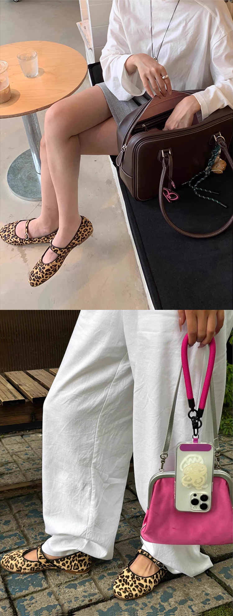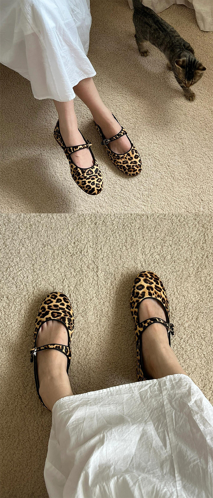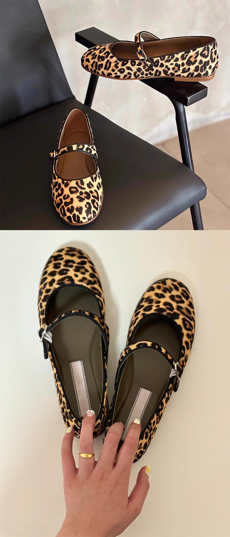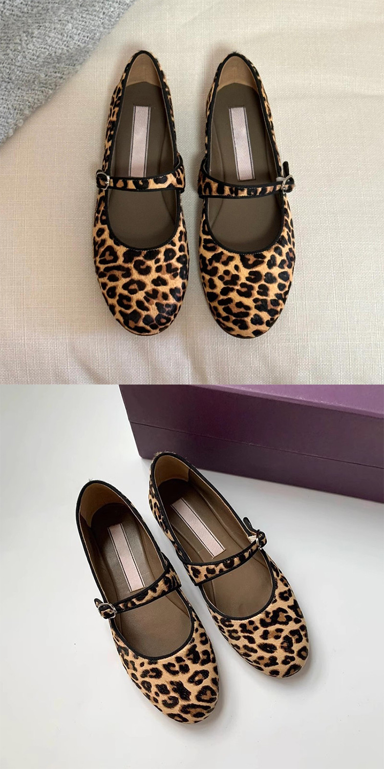 가을 2024 새로운 레트로 라운드 발가락 발레 얕은 입 한 캐릭터 버클 플랫 레오파드 무늬 싱글 신발 여성 메리 제인스토어 가기