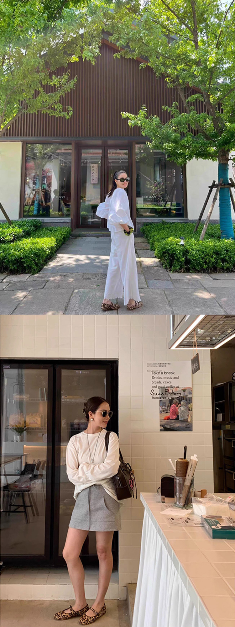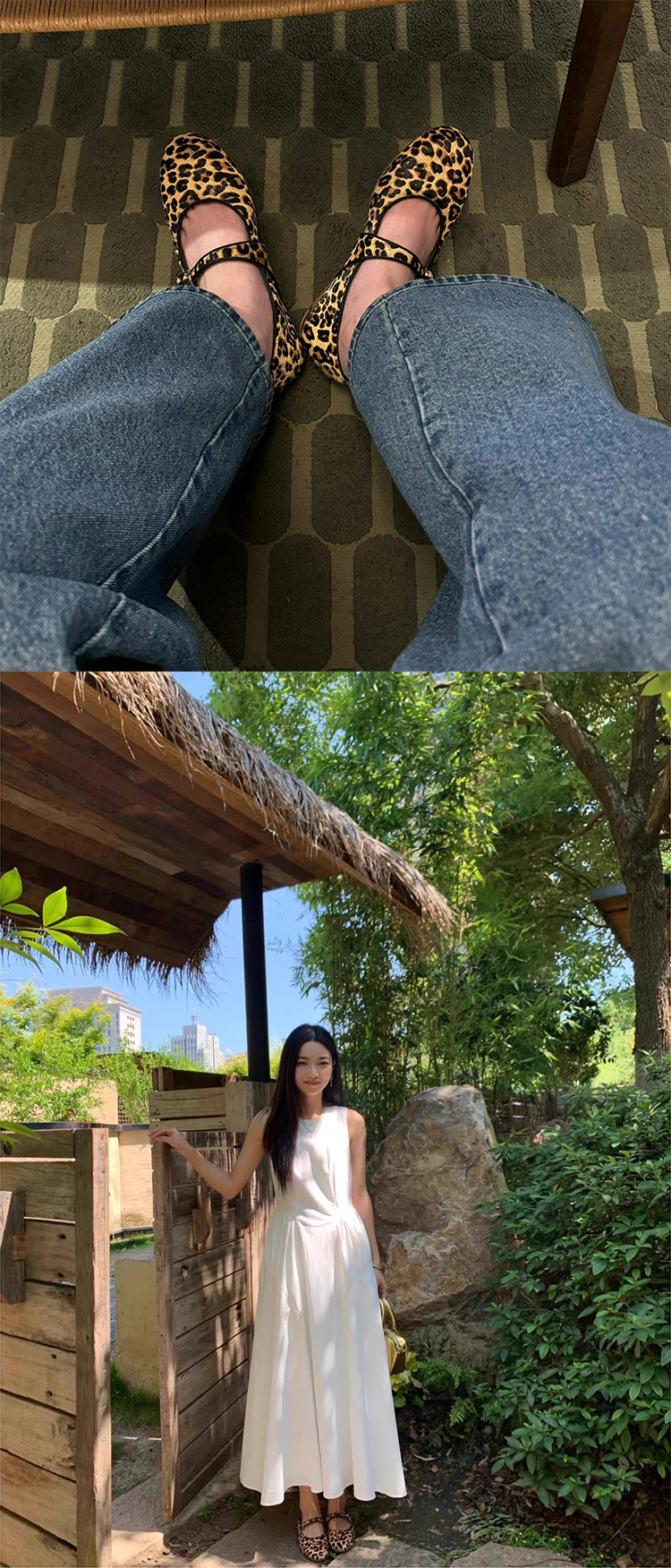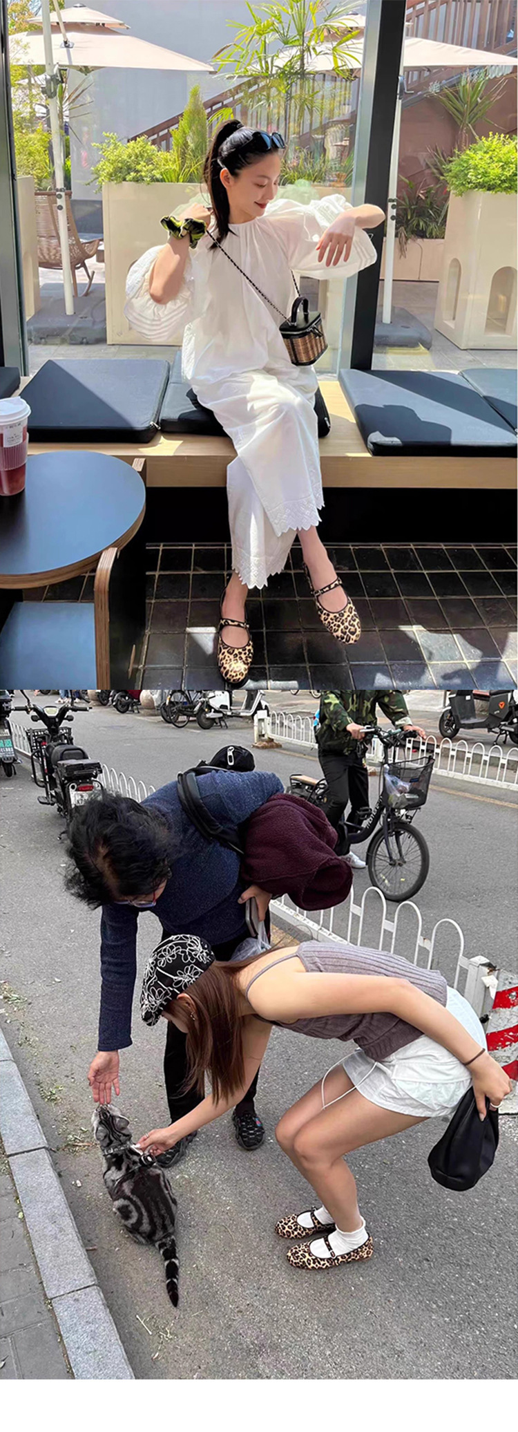 가을 2024 새로운 레트로 라운드 발가락 발레 얕은 입 한 캐릭터 버클 플랫 레오파드 무늬 싱글 신발 여성 메리 제인스토어 가기
