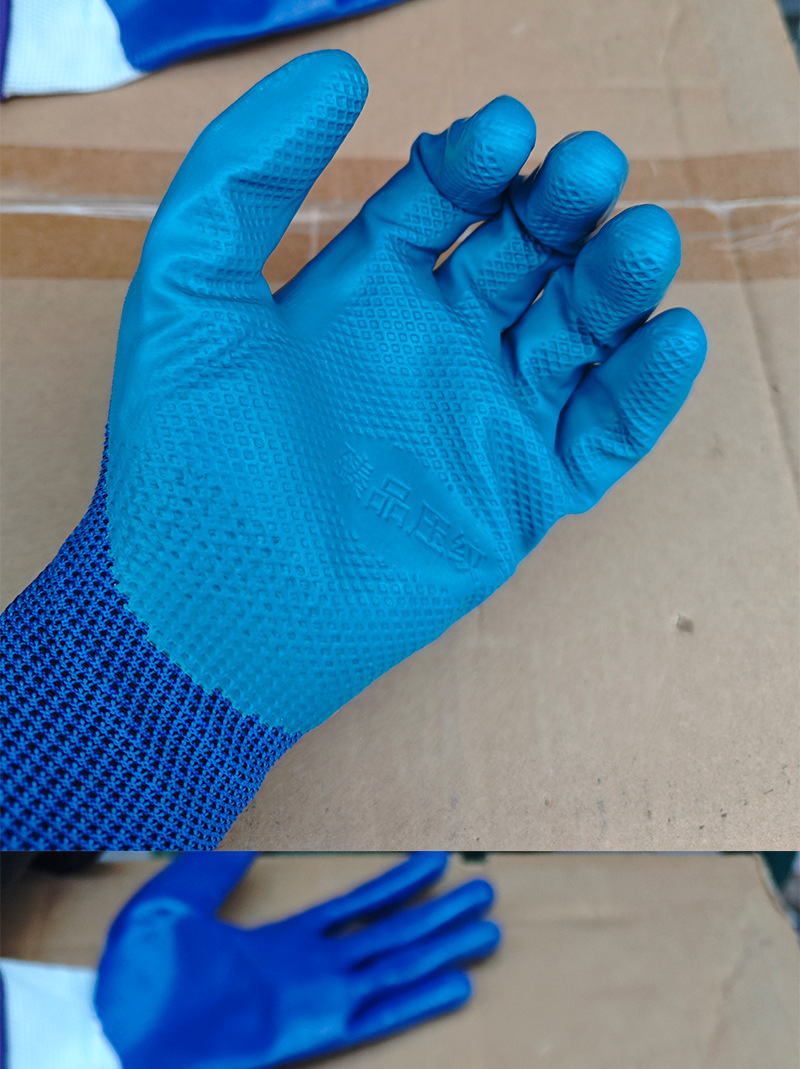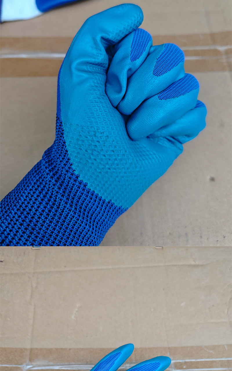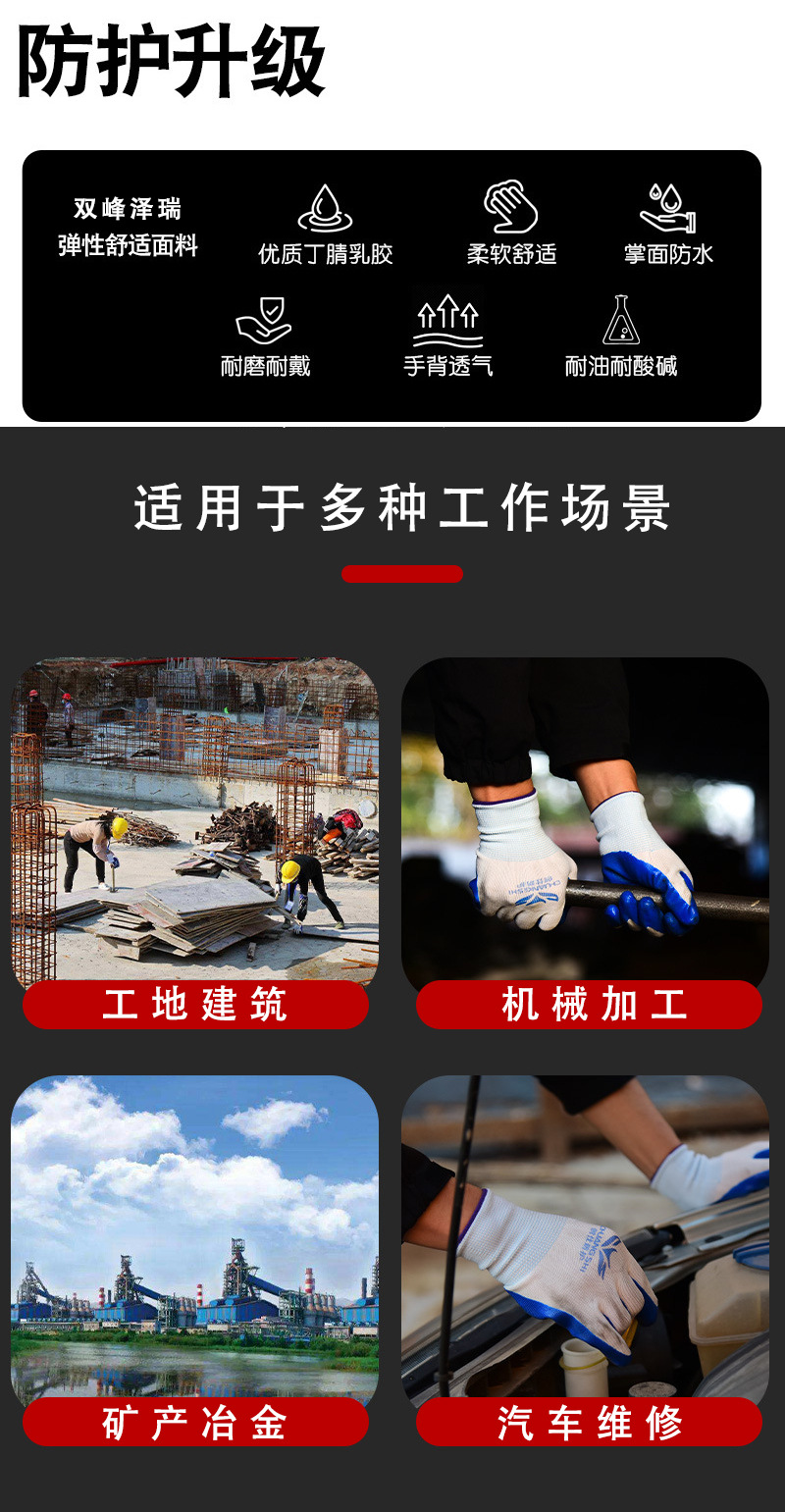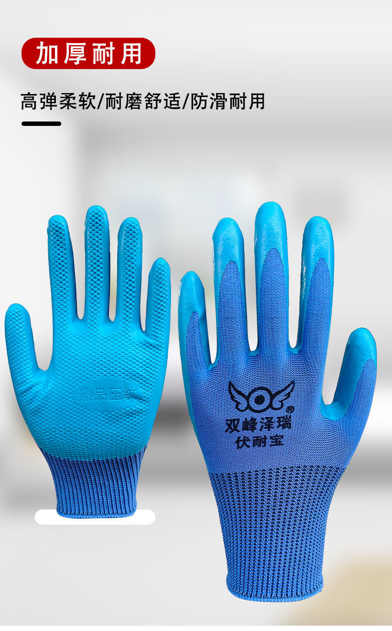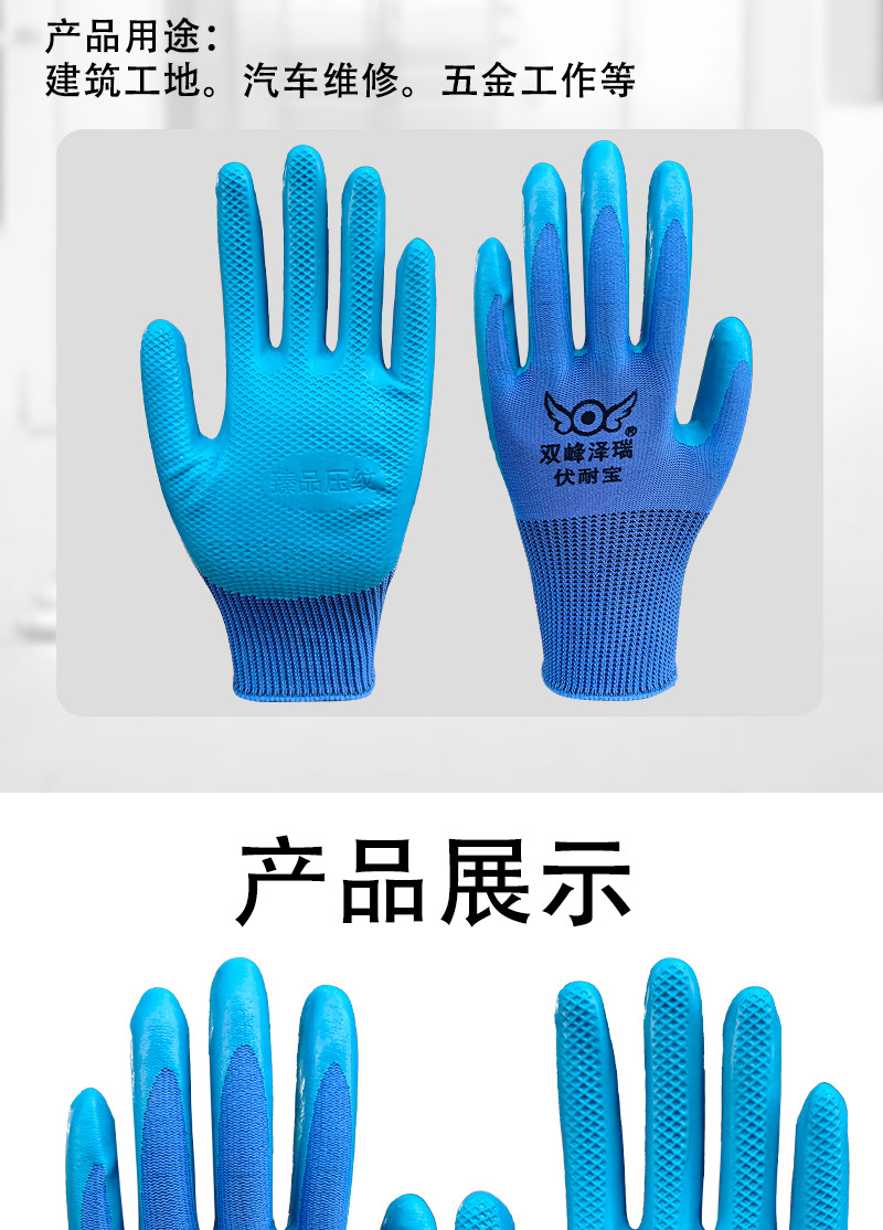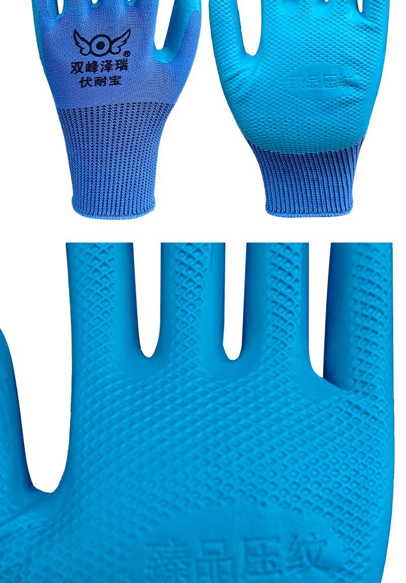 Shuangfeng Zerui 엠보싱 장갑 부드럽고 편안한 미끄럼 방지 내마모성 통기성 자동차 수리 공장 산 및 알칼리 내성 노동 장갑
