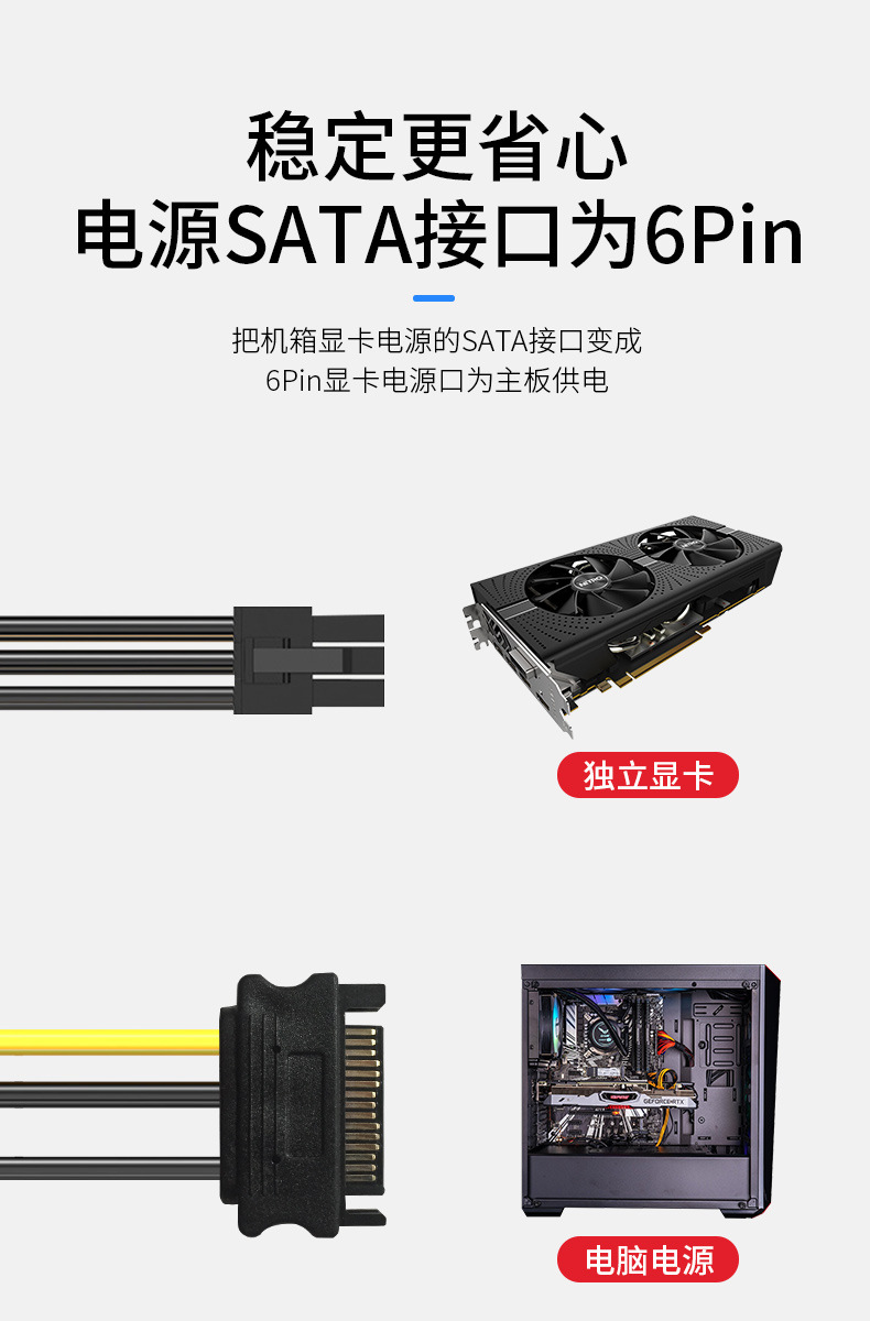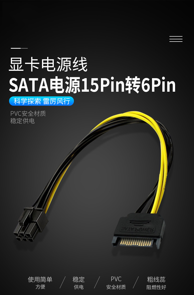 컴퓨터 그래픽 카드 전원 코드 데스크탑 호스트 sata 전원 공급 장치 6p 전원 공급 장치 어댑터 15 핀-8PIN 어댑터스토어 가기