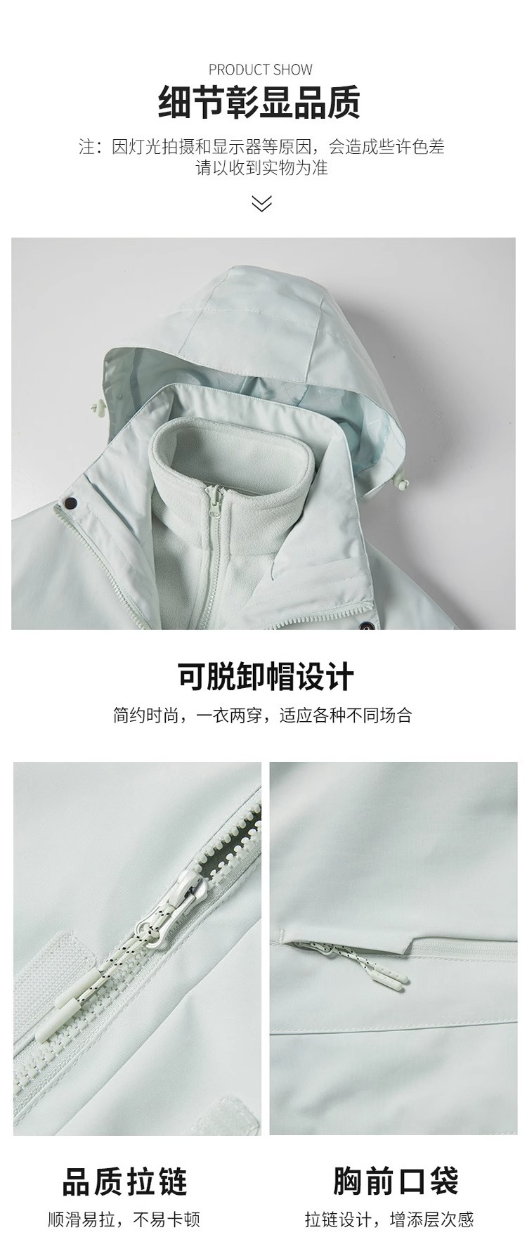 남녀공용 봄가을 자켓 탈부착 가능 방풍 방수 작업복 커플 아웃도어 스포츠 산악 자켓