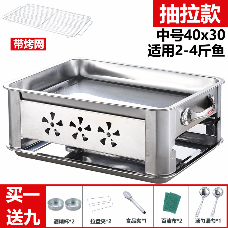 생선 그릴 스테인레스 스틸 상업용 레스토랑 생선 그릴 접시 가정용 탄소 오븐 무연 숯 스토브 직사각형 알코올 스토브스토어 가기