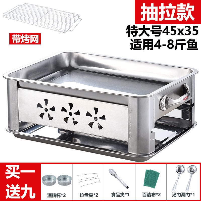 생선 그릴 스테인레스 스틸 상업용 레스토랑 생선 그릴 접시 가정용 탄소 오븐 무연 숯 스토브 직사각형 알코올 스토브