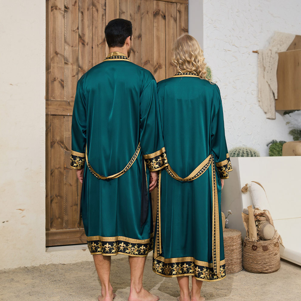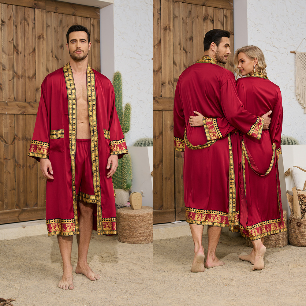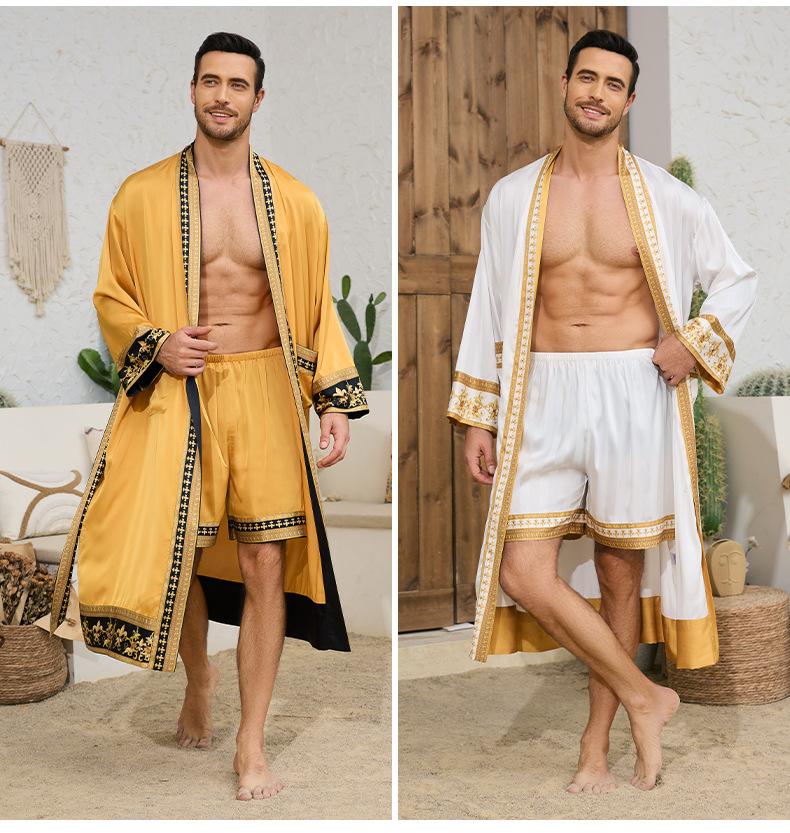 국경 간 새로운 유럽과 미국의 바로크 사틴 로브 반바지 세트 나이트 가운 남성 홈웨어 3403 3397