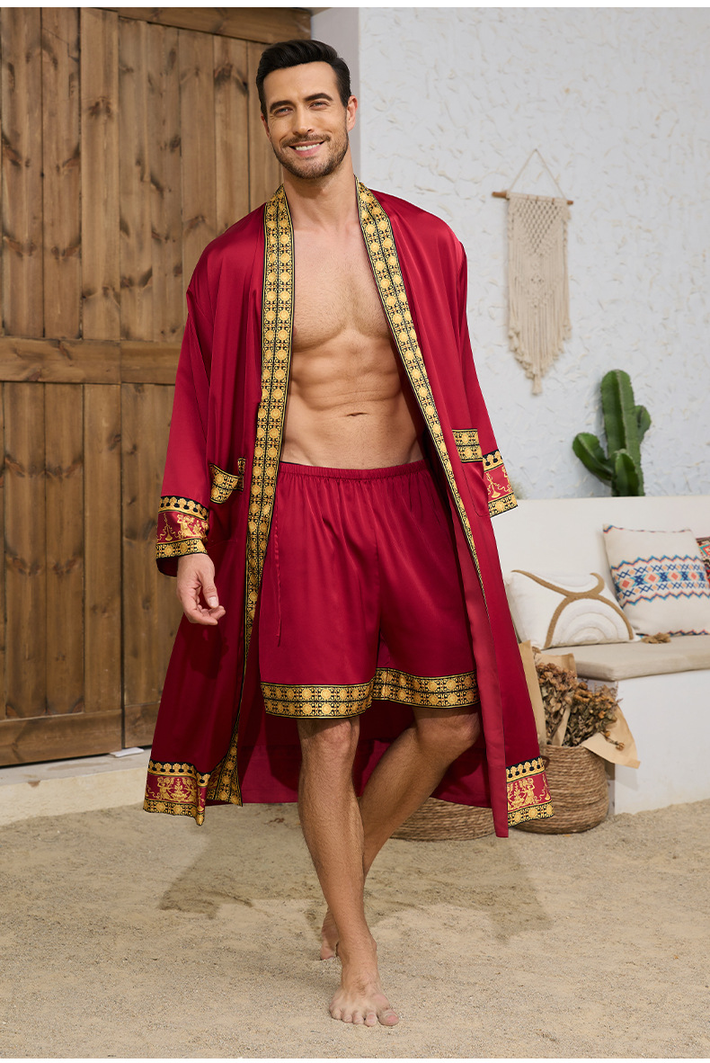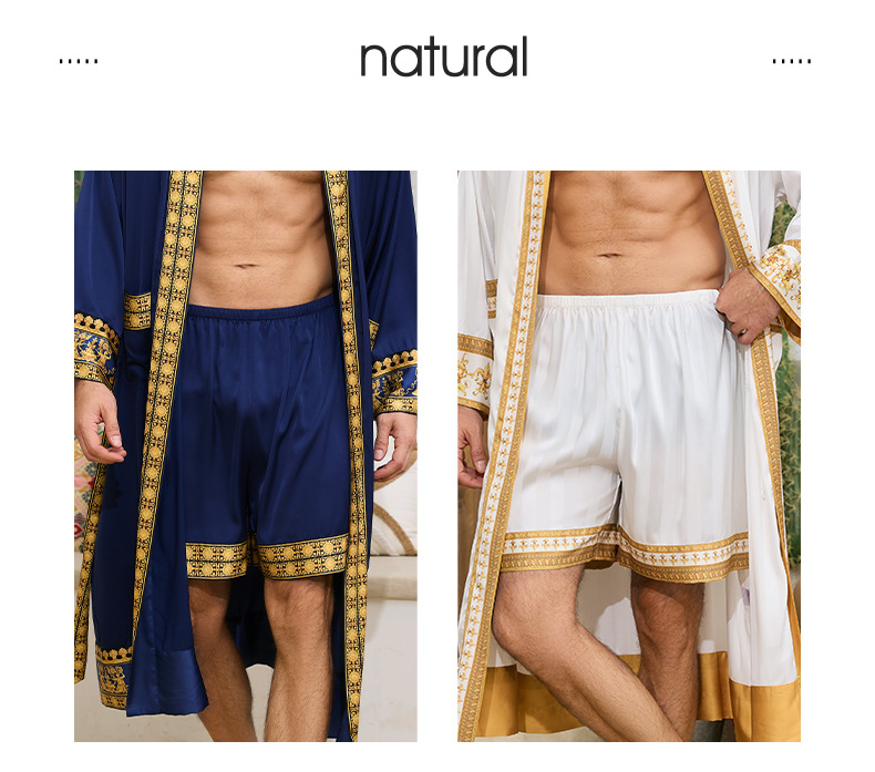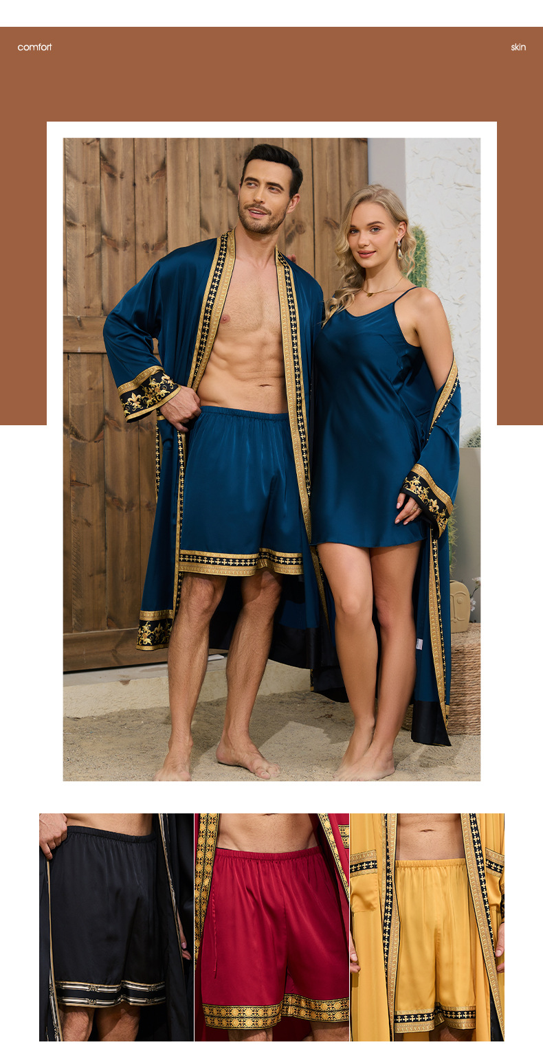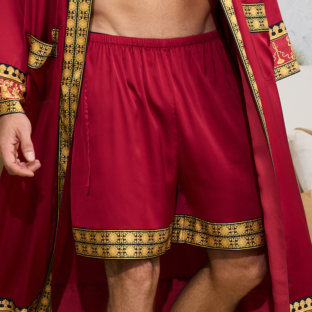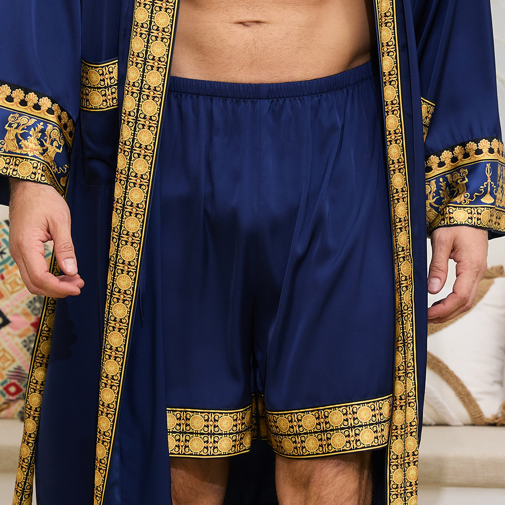 국경 간 새로운 유럽과 미국의 바로크 사틴 로브 반바지 세트 나이트 가운 남성 홈웨어 3403 3397스토어 가기