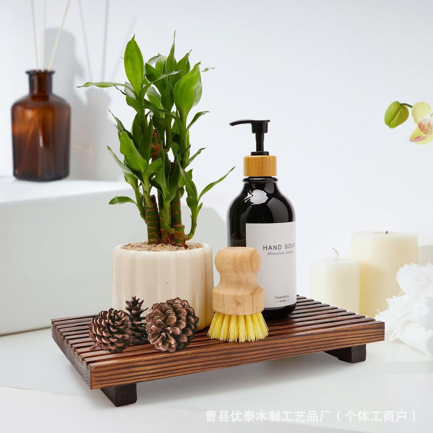 새로운 나무 욕실 장식 장식 비누 트레이 아로마 테라피 촛불 장식품 바닥 홀터 손 소독제 비누 보관 랙스토어 가기
