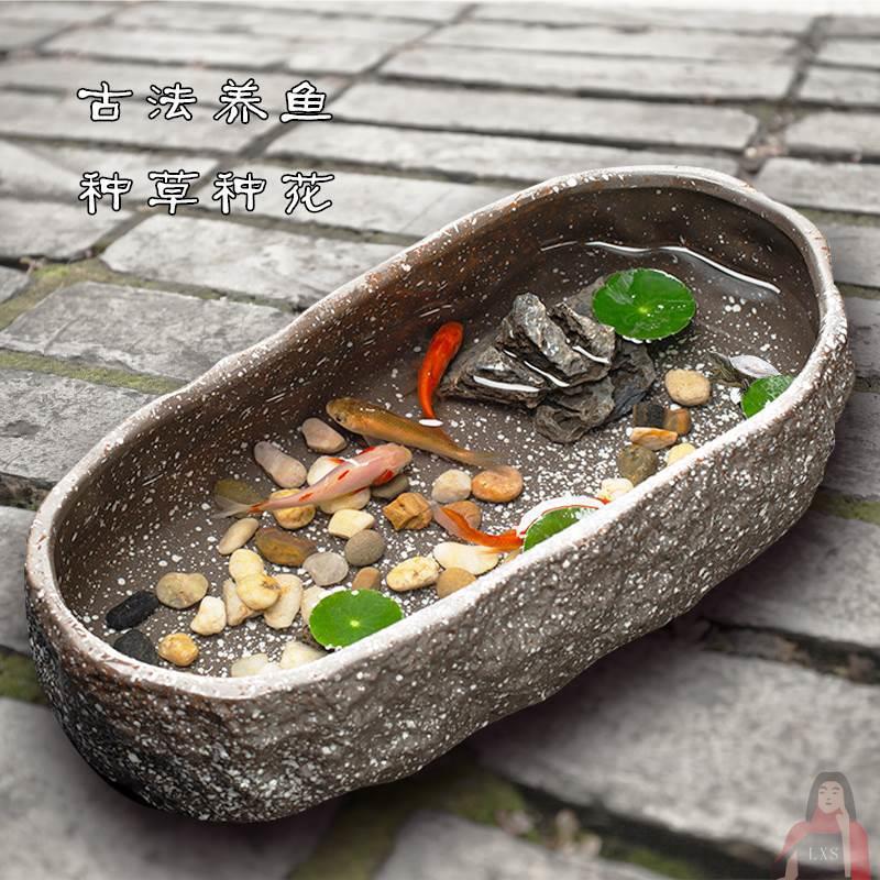 모조 돌 세라믹 작은 거북이 탱크 고대 방법 물고기 작은 물고기 탱크 거실 작은 발코니 생태 물 문화 도자기 물 연못스토어 가기