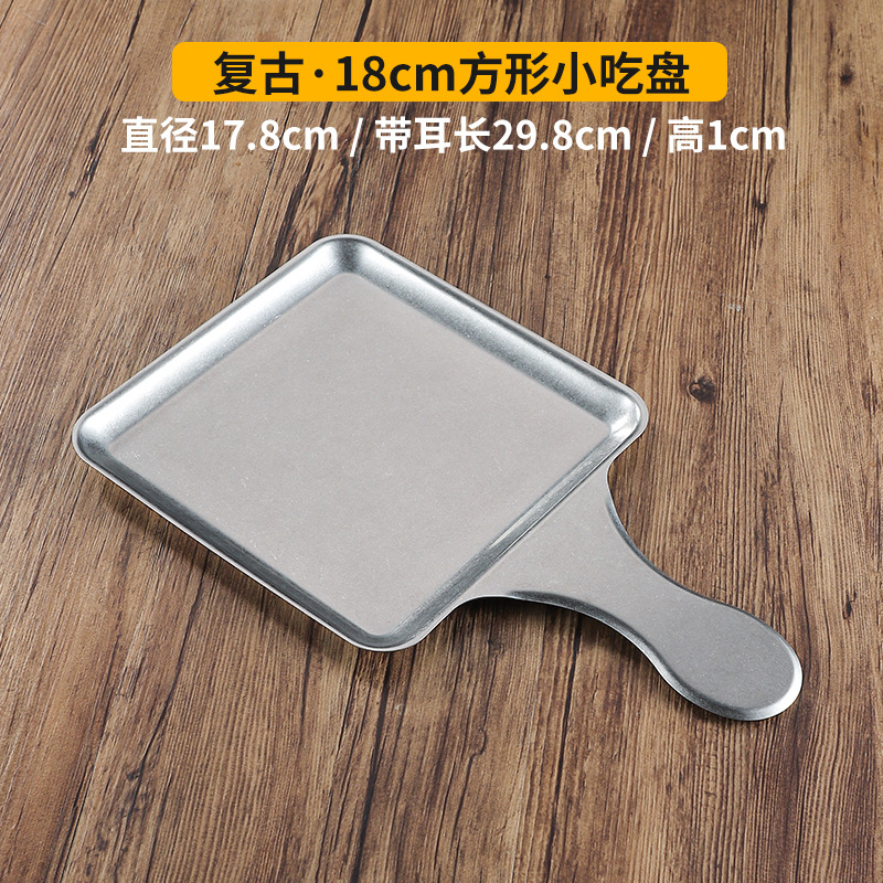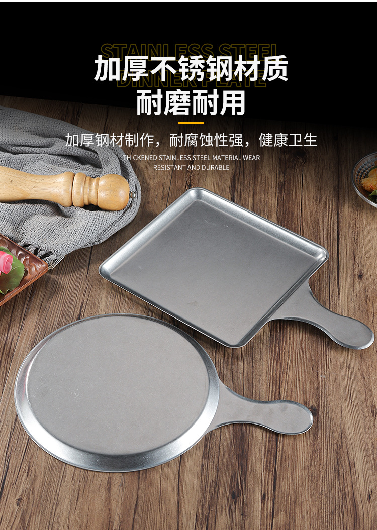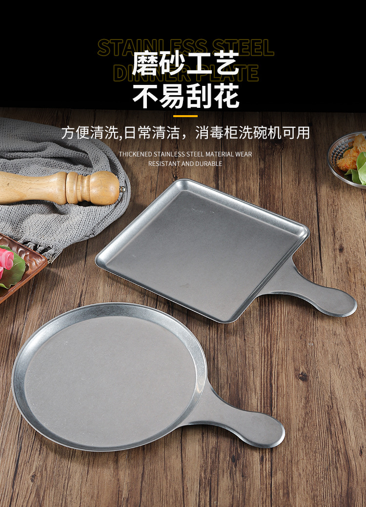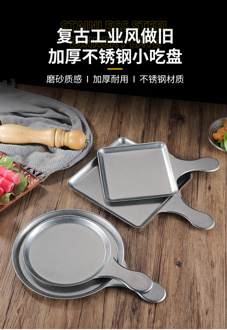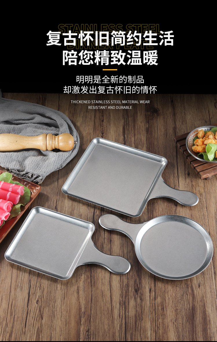 빈티지 메이크업 304 스테인레스 스틸 플랫 하단 스낵 플레이트 라운드 스퀘어 플레이트 웨스턴 스테이크 플레이트 바베큐 핸들 플랫 플레이트스토어 가기