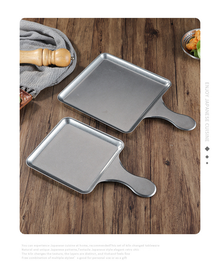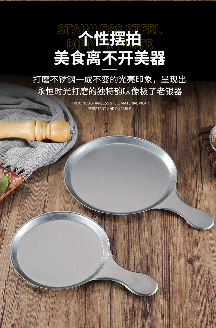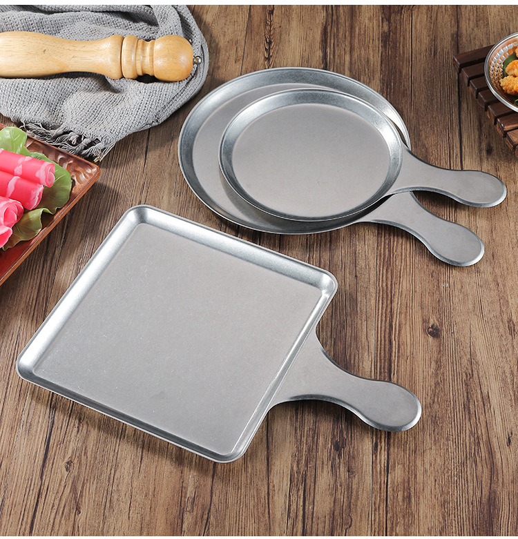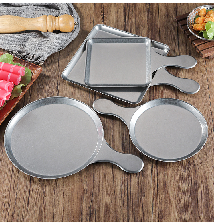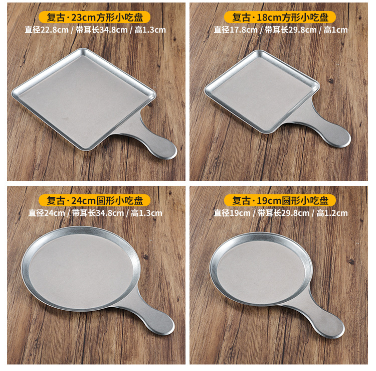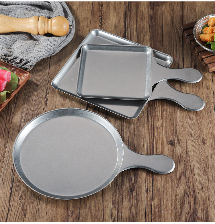 빈티지 메이크업 304 스테인레스 스틸 플랫 하단 스낵 플레이트 라운드 스퀘어 플레이트 웨스턴 스테이크 플레이트 바베큐 핸들 플랫 플레이트스토어 가기