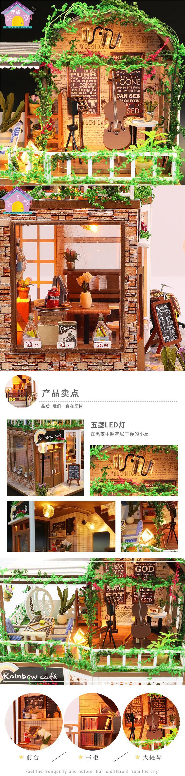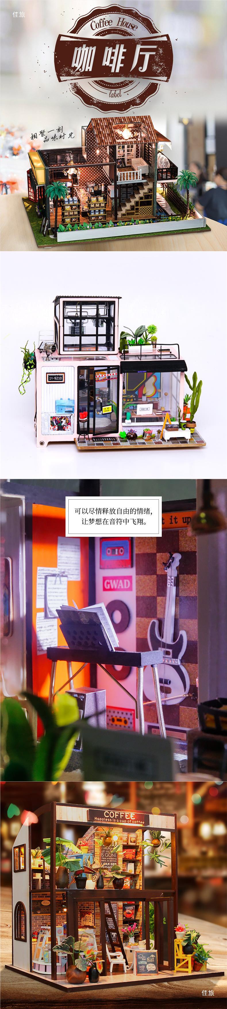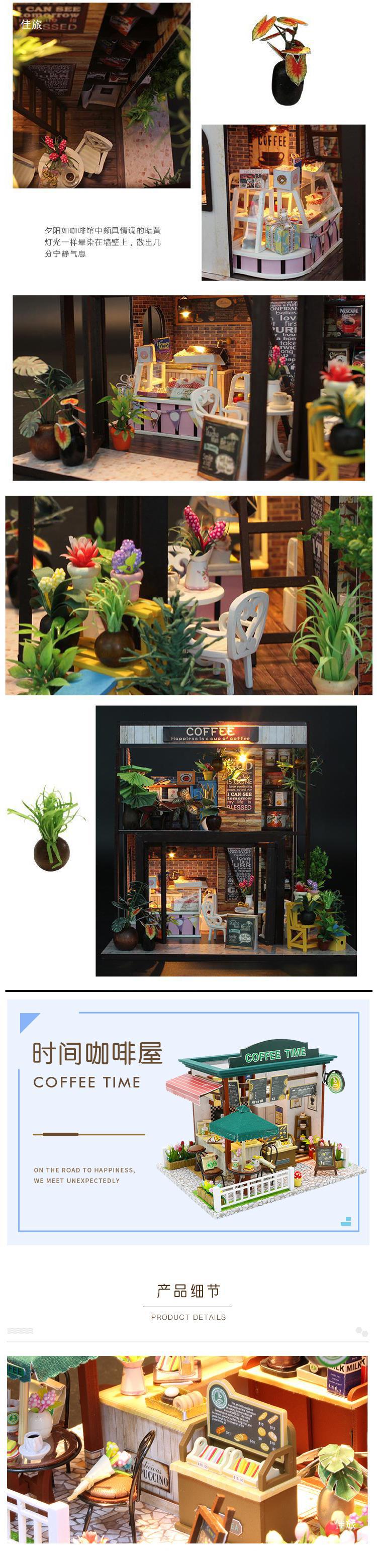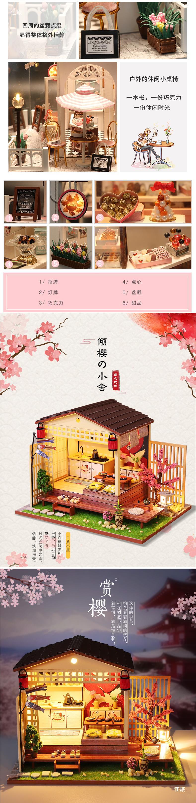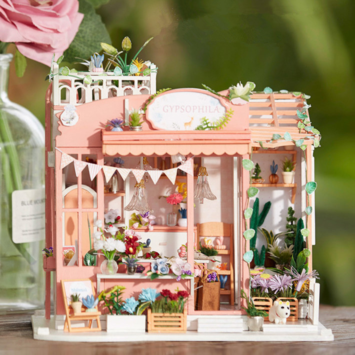 Diy 캐빈 수제 마이크로 풍경 작은 집 커피 하우스 꽃 룸 조립 상점 장식품 선물 여성 미니어처 모델스토어 가기