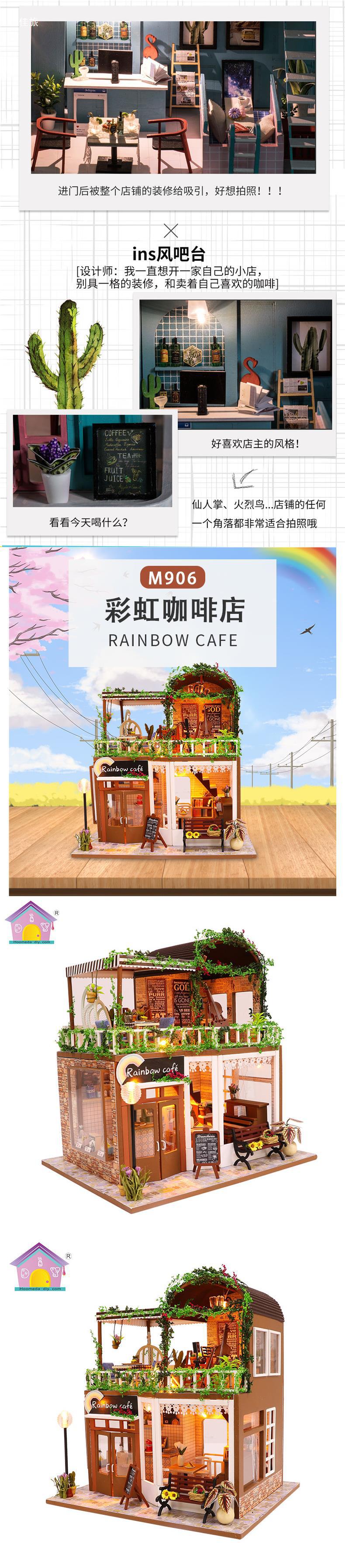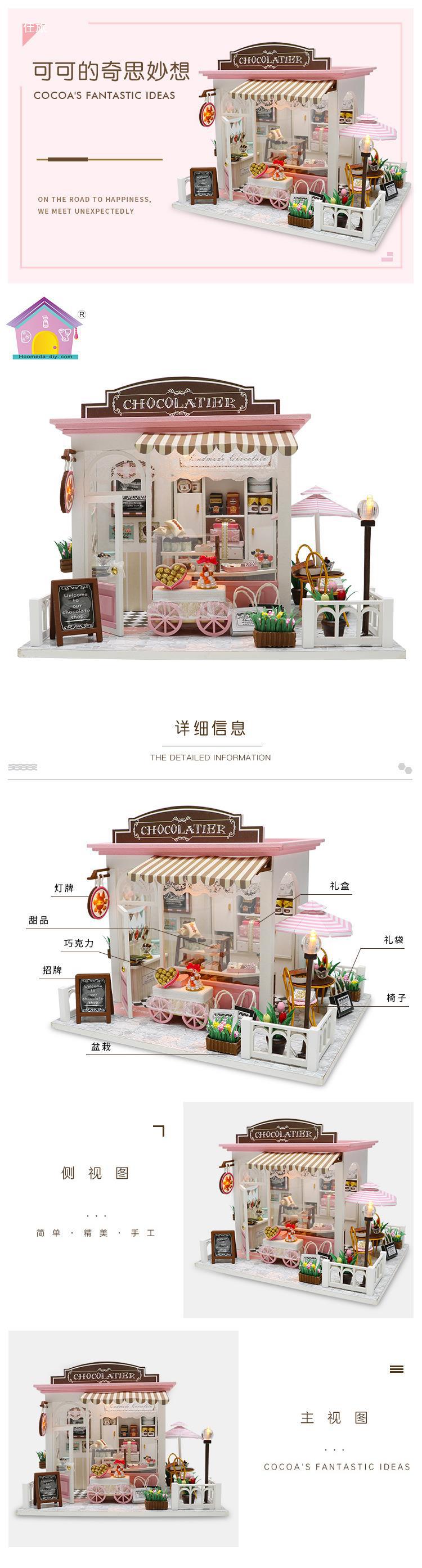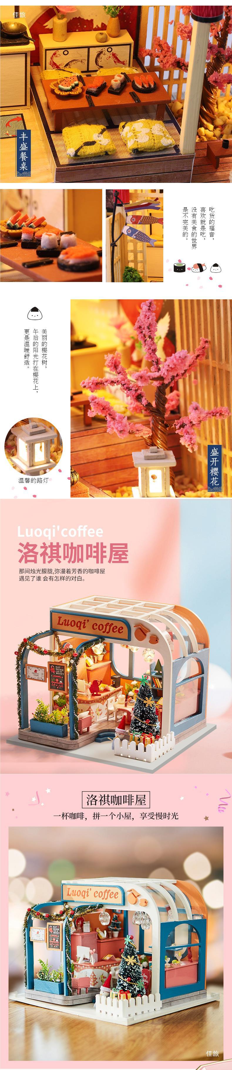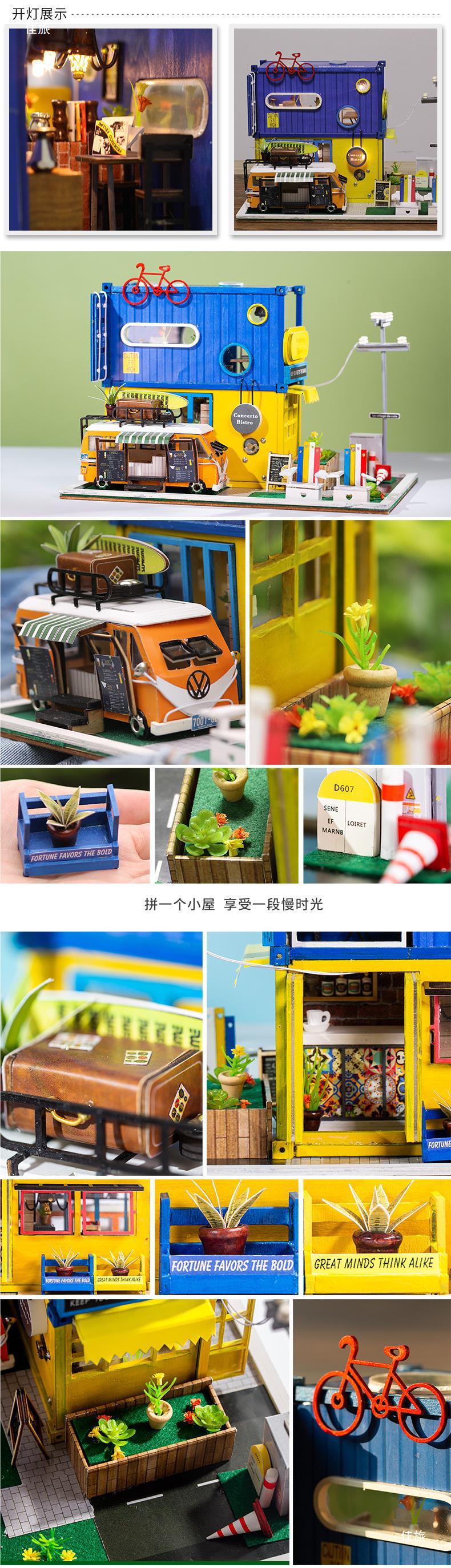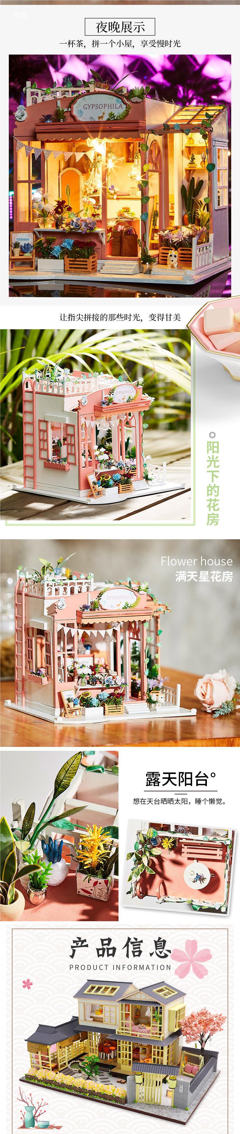 Diy 캐빈 수제 마이크로 풍경 작은 집 커피 하우스 꽃 룸 조립 상점 장식품 선물 여성 미니어처 모델스토어 가기