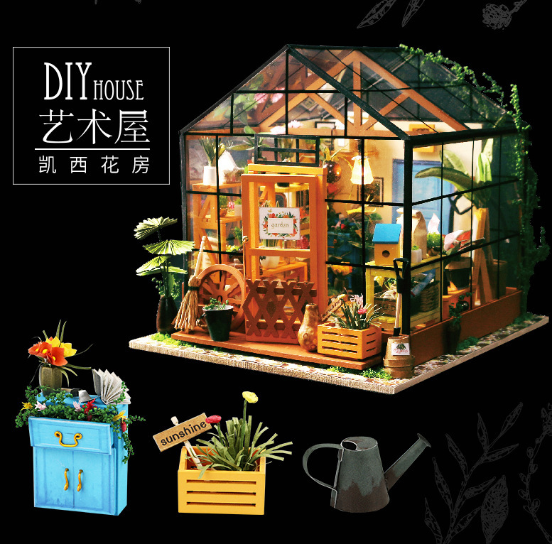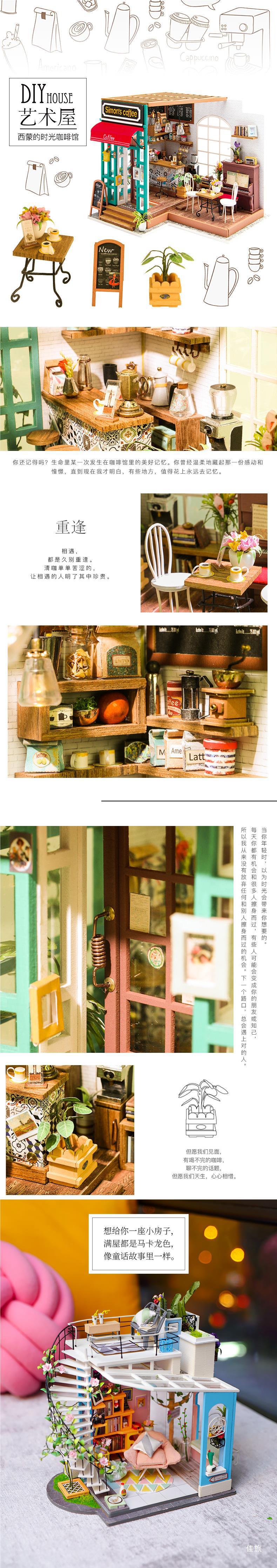 Diy 캐빈 수제 마이크로 풍경 작은 집 커피 하우스 꽃 룸 조립 상점 장식품 선물 여성 미니어처 모델