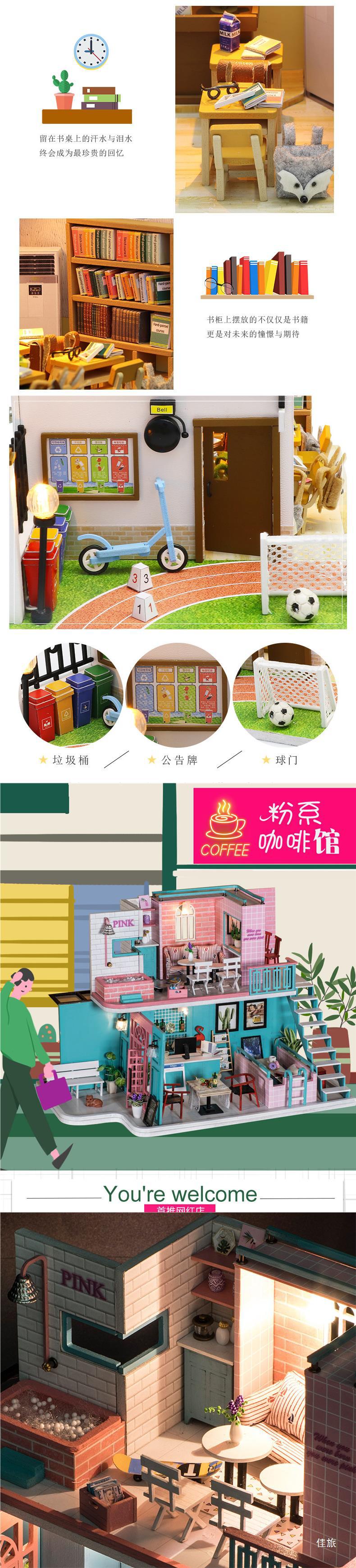 • Qingying 작은 집 + 도구 + 램프 + 먼지 커버 + 음악