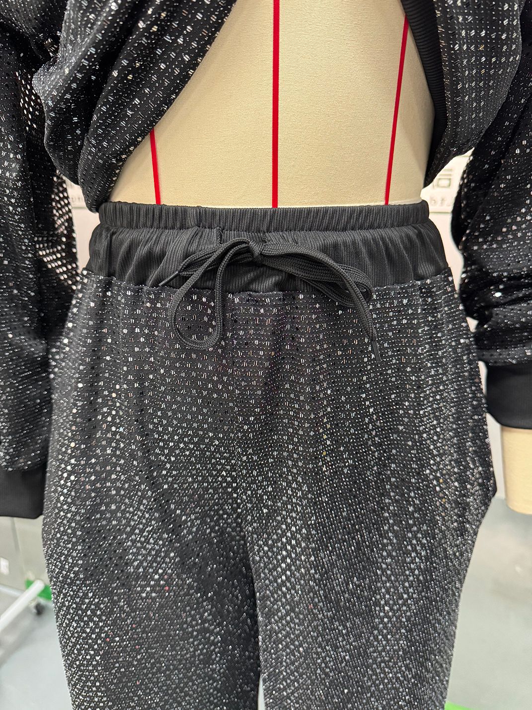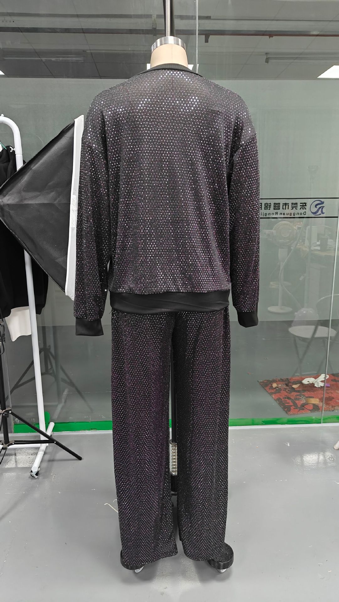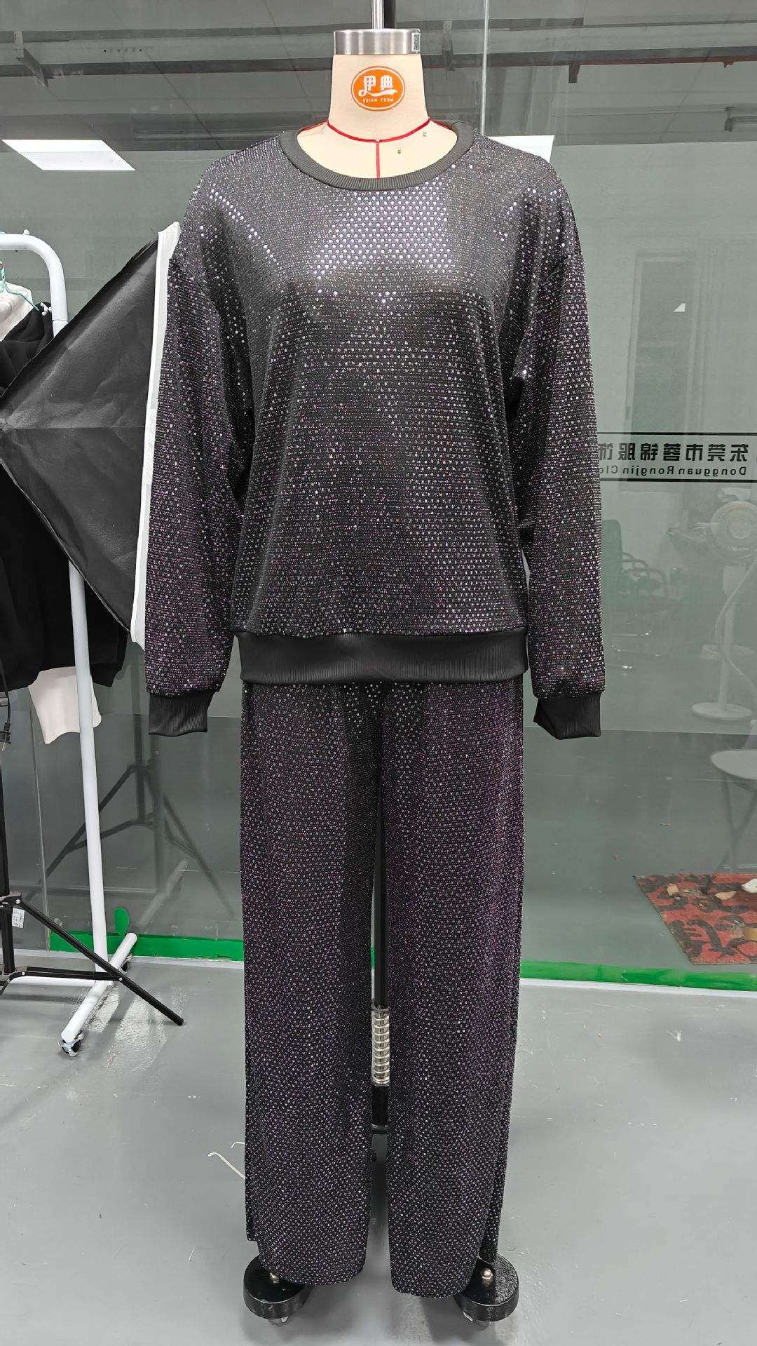 유럽과 미국의 국경 간 가을과 겨울 폭발 여성의 별이 빛나는 하늘 긴 소매 크루 넥 루즈 탑 드로우 스트링 와이드 레그 투피스 세트