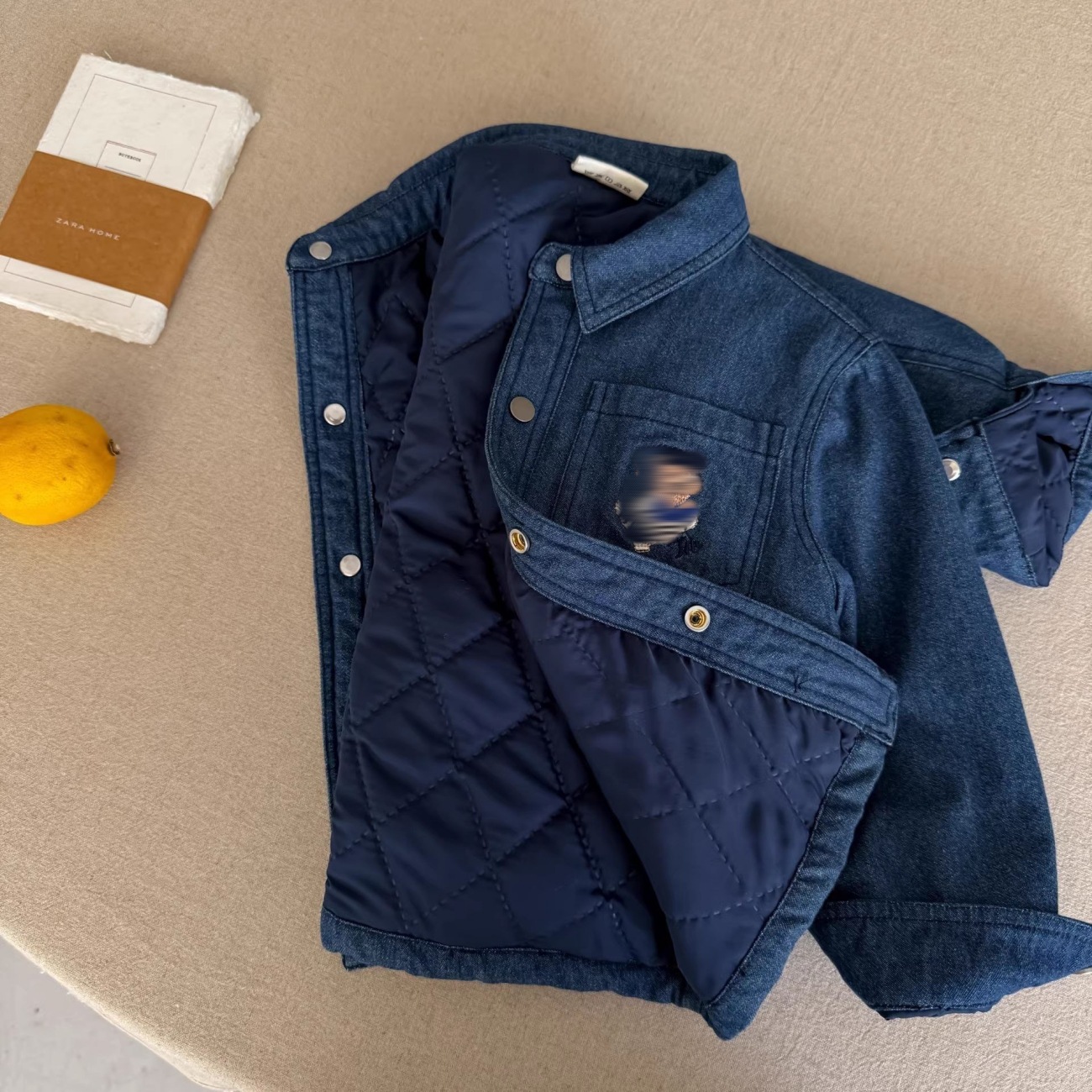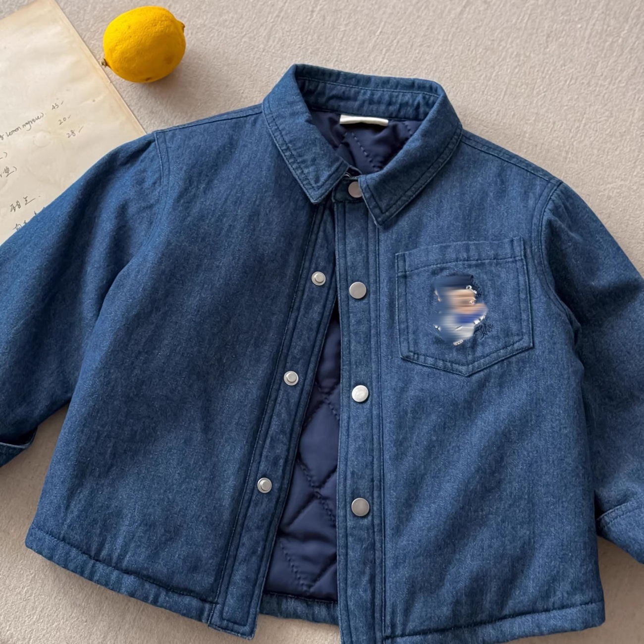 재고! 어린이 면화 재킷 2025 겨울 소년 만화 곰 데님 셔츠 소년 아기 코트 도매스토어 가기