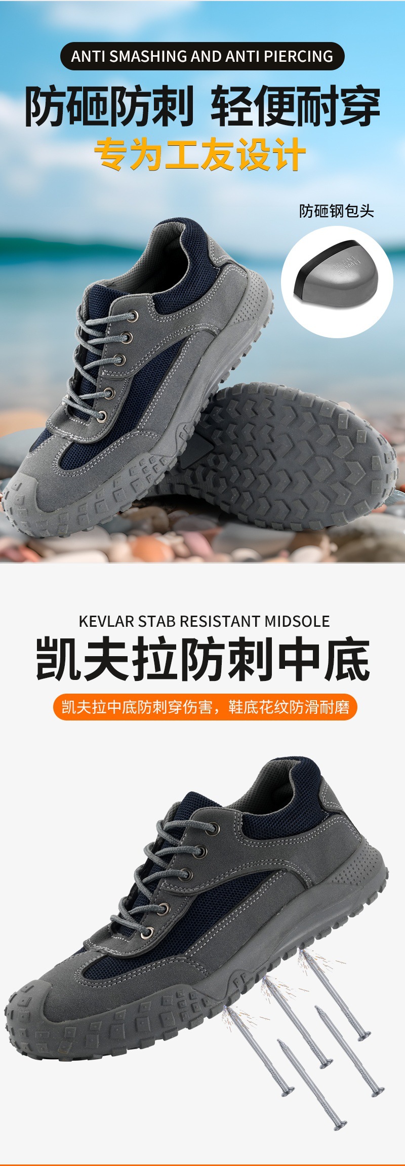 노동 보호화, 내마모성 남성용 신발, 충격 방지, 천공 방지, 미끄럼 방지, 장시간 서 있어도 피곤하지 않은 스틸 토캡 작업장 공장 사계절 신발스토어 가기