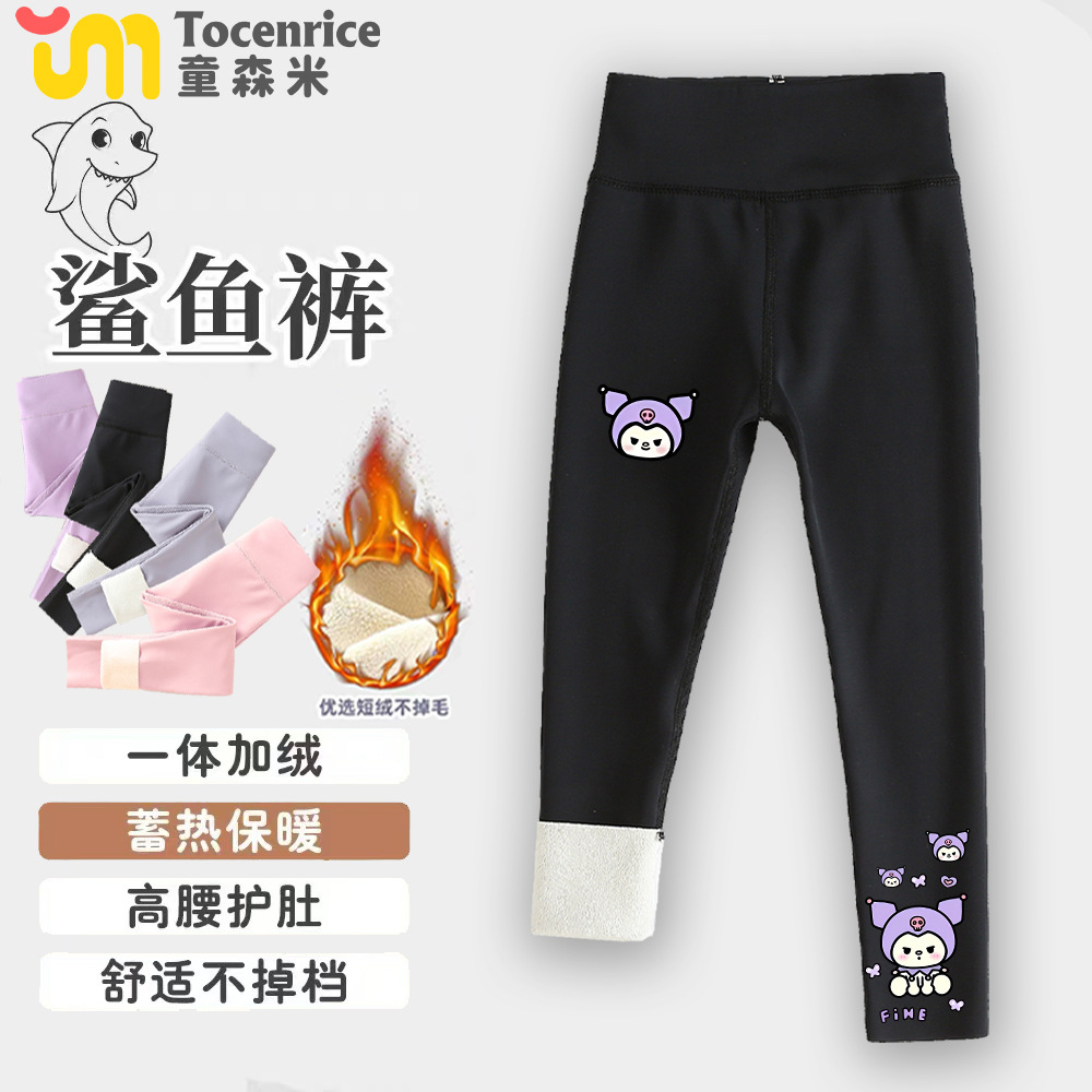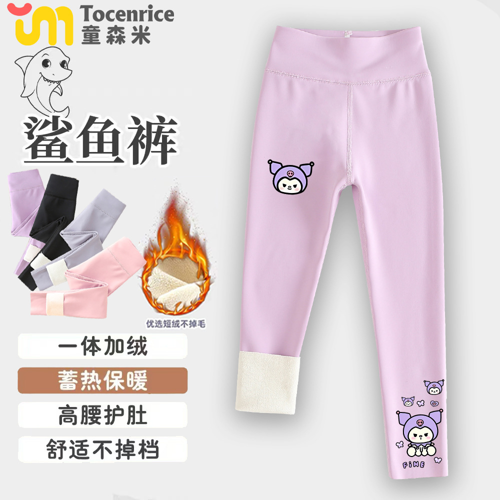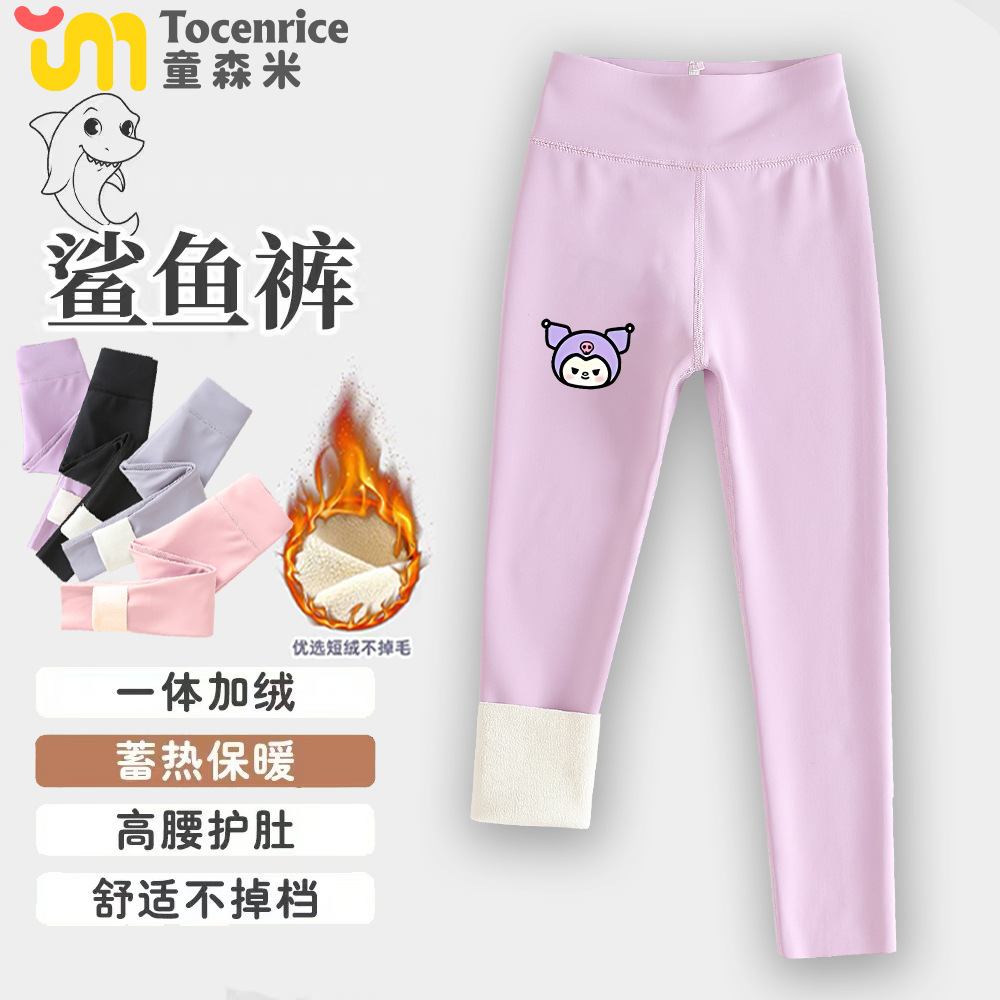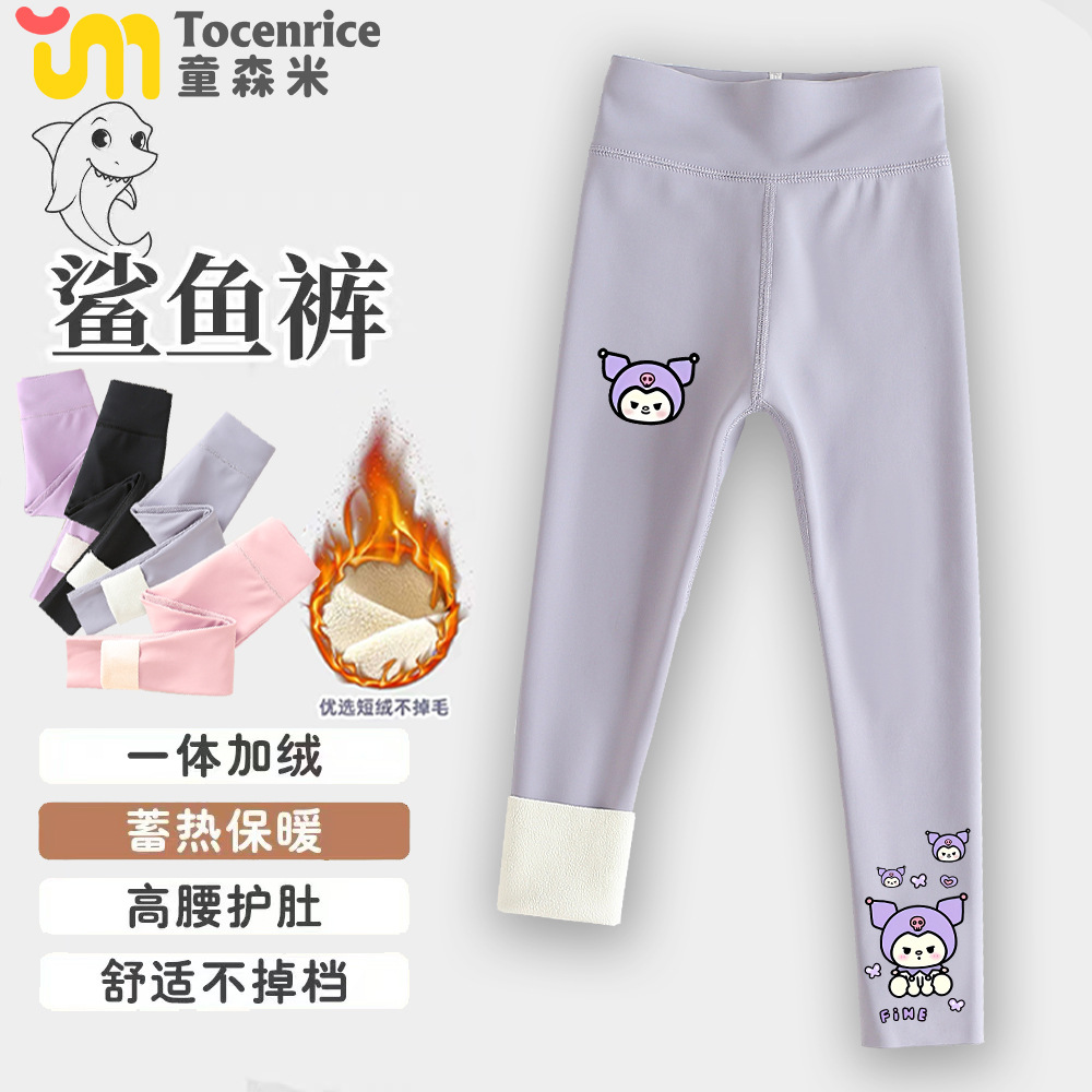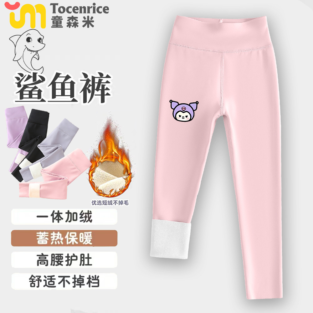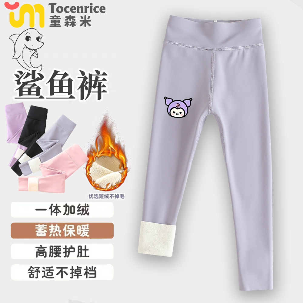 Kulomi 어린이 상어 바지 봄 가을 및 겨울 새 소녀 스포츠 요가 바지 외부 착용 중 큰 어린이 레깅스 따뜻한스토어 가기