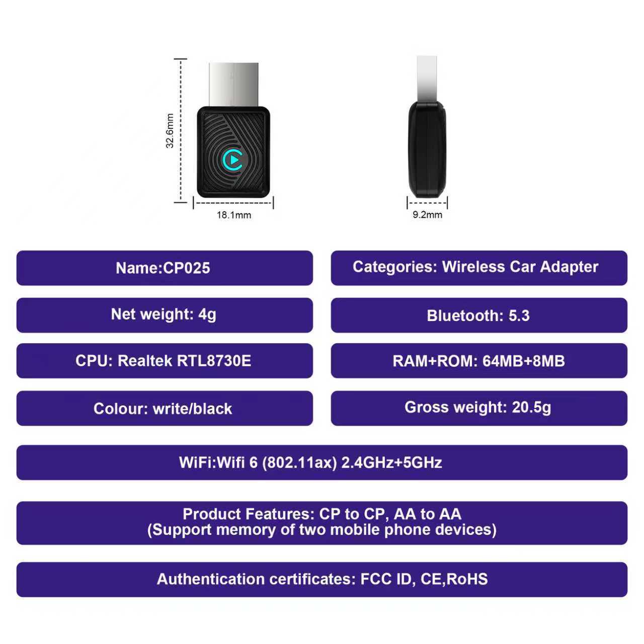 CP025 유선에서 무선으로 전환하는 카플레이 박스, 해외 무역 차량용 인터넷 연결 박스, 스마트 휴대용 인터넷 연결 어댑터