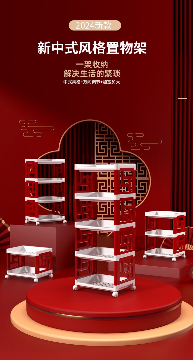 새로운 중국 스타일 스토리지 랙 이동식 거실 스낵 스토리지 랙 욕실 주방 다층 스토리지 랙
