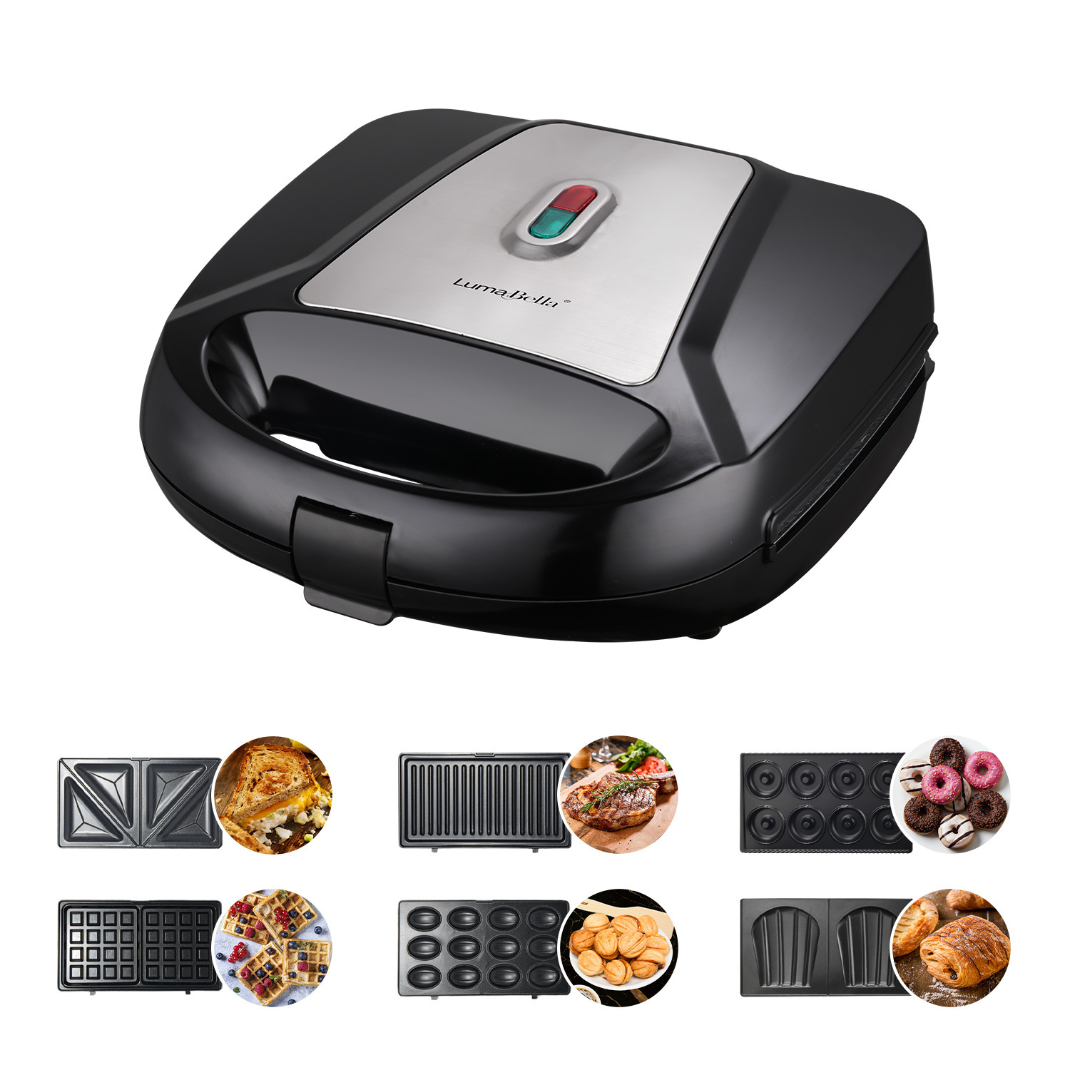 루마 벨라 여섯 샌드위치 기계 토스터 스테인레스 스틸 샌드위치 와플 메이커