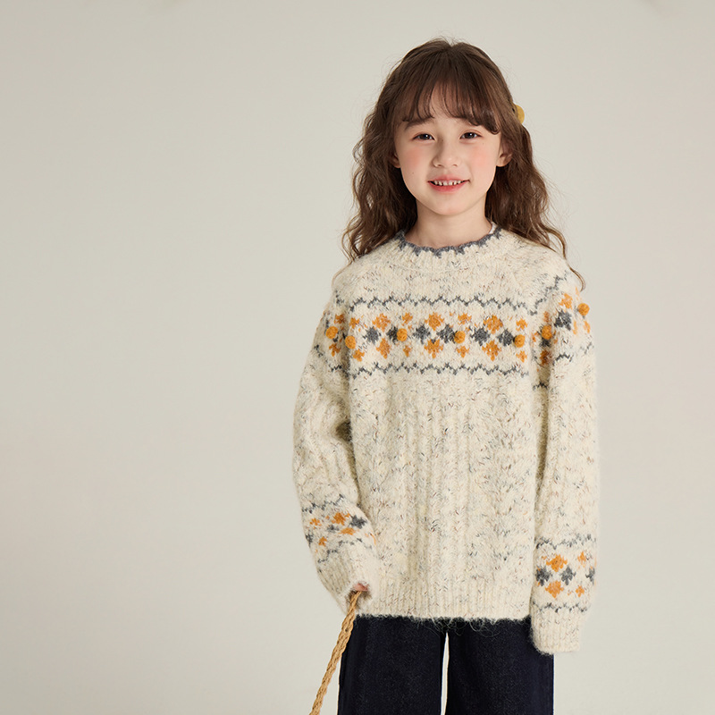 아이모베이베이 아동용 스웨터 2024 겨울 모델 남녀공용 한국 스타일 레트로 레이지 스타일 두꺼운 니트 상의스토어 가기