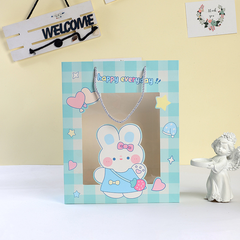 • 파란색 8043-1 창 선물 가방, 흰색 판지, 길이 26x 너비 10x 높이 32