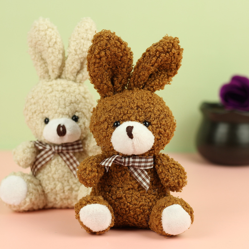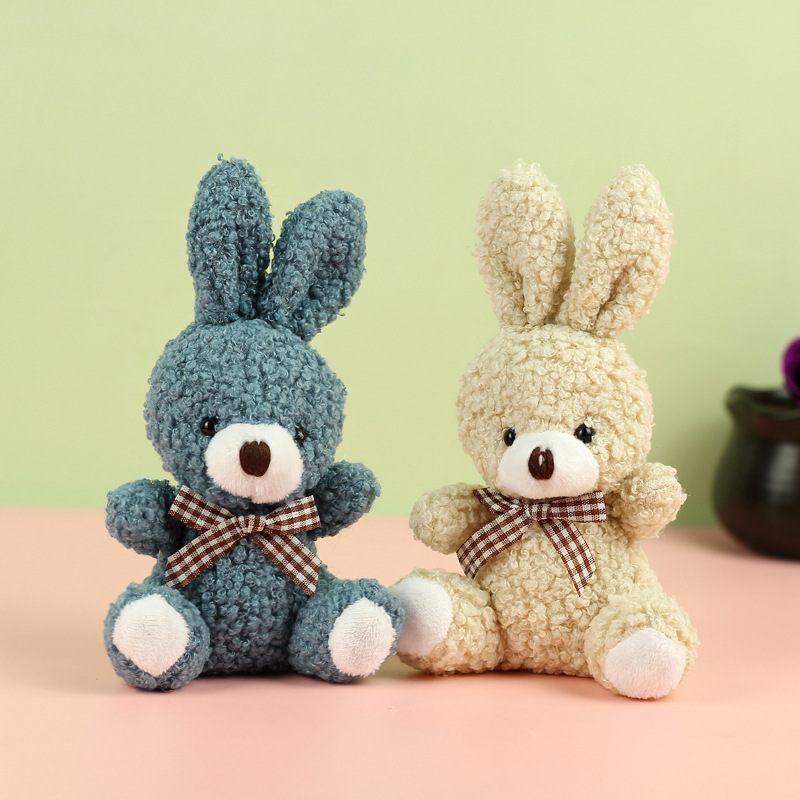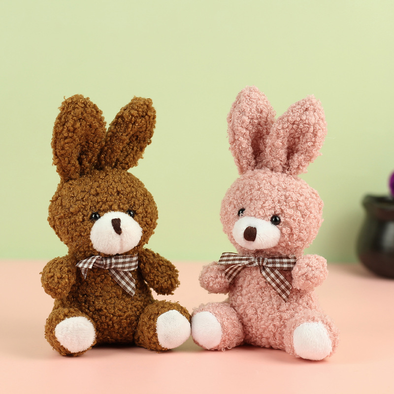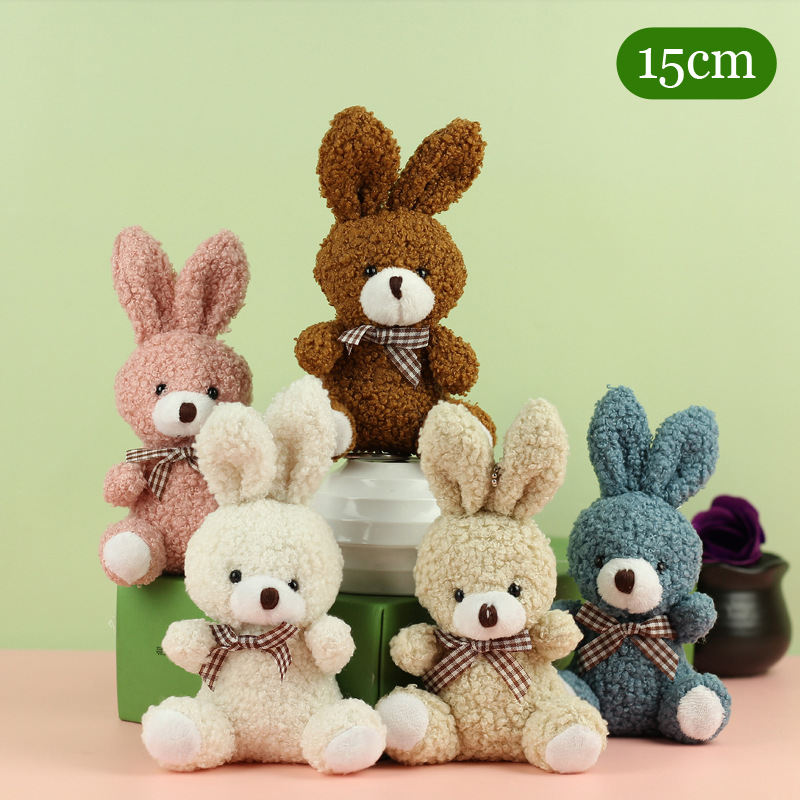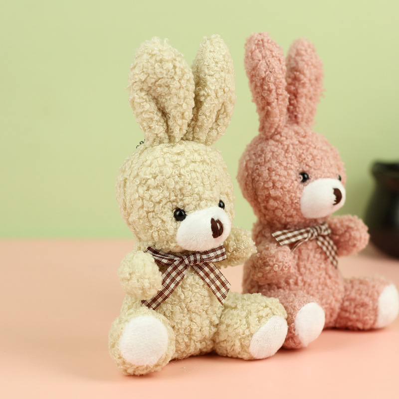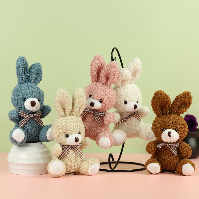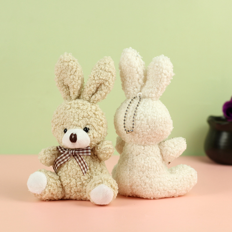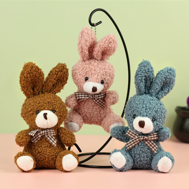 도매 귀여운 앉아 테디 토끼 봉제 인형 긴 귀 스카프 토끼 인형 여성용 배낭 교수형 장식품 의류 액세서리스토어 가기