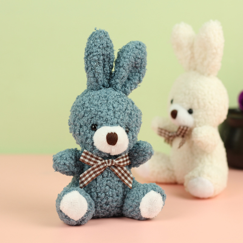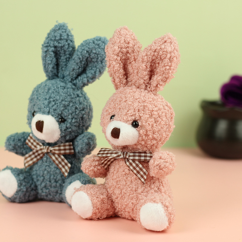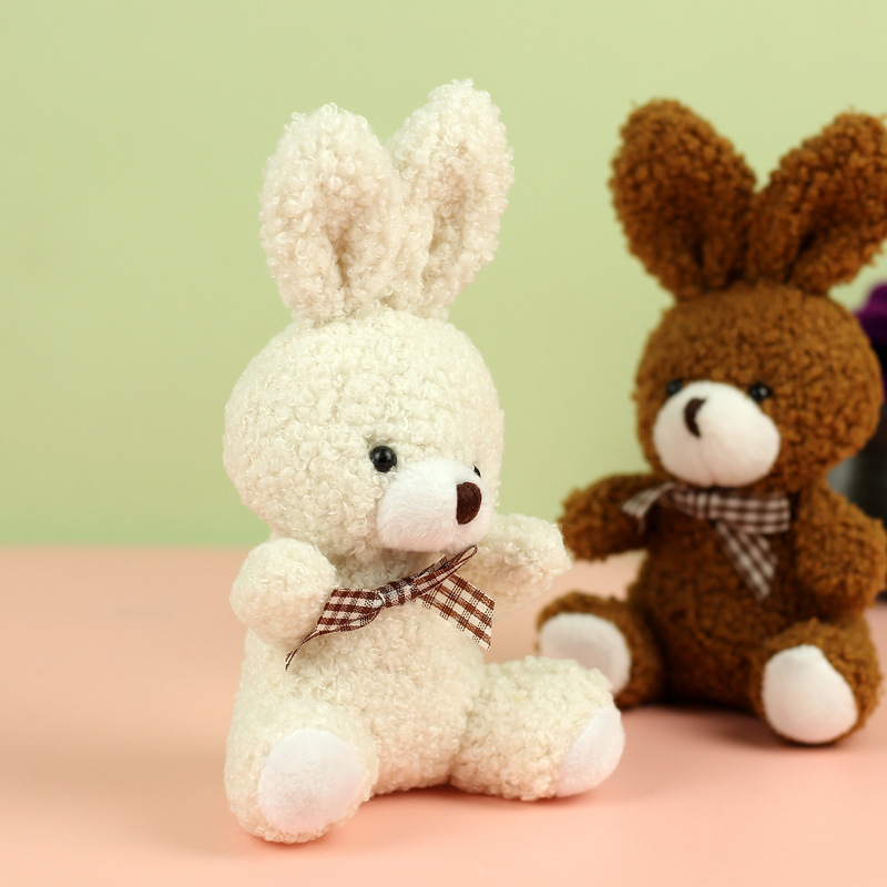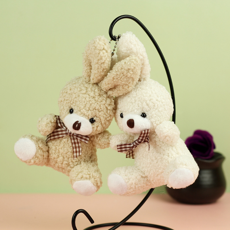 도매 귀여운 앉아 테디 토끼 봉제 인형 긴 귀 스카프 토끼 인형 여성용 배낭 교수형 장식품 의류 액세서리