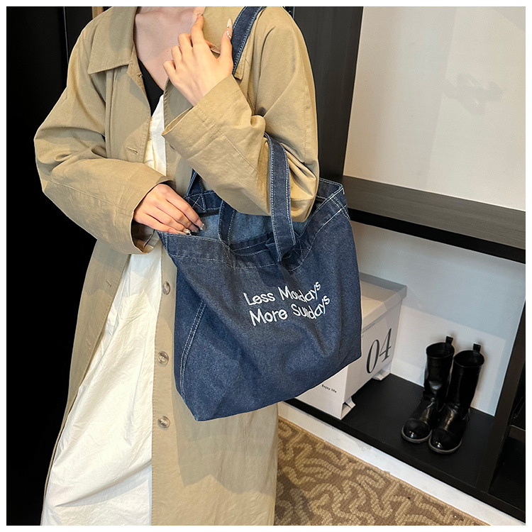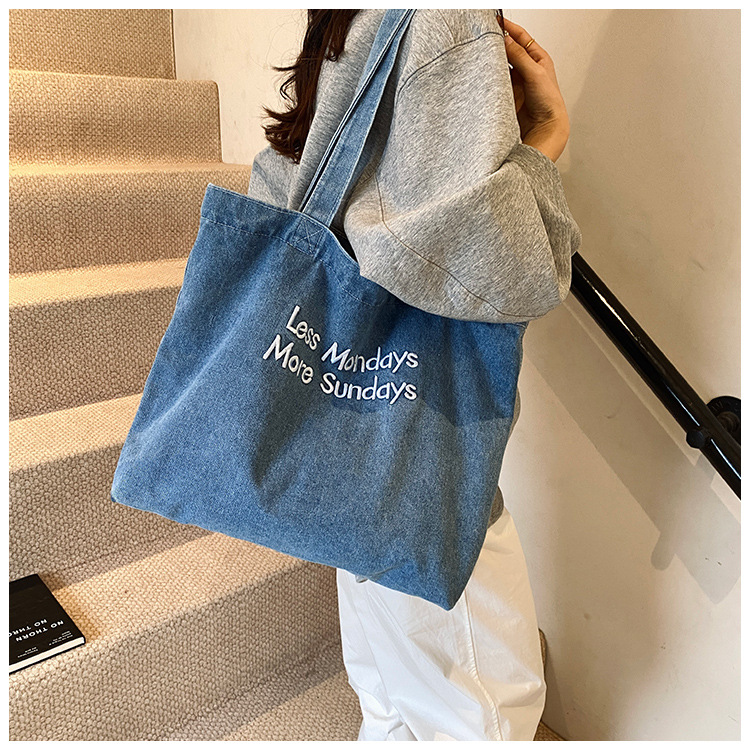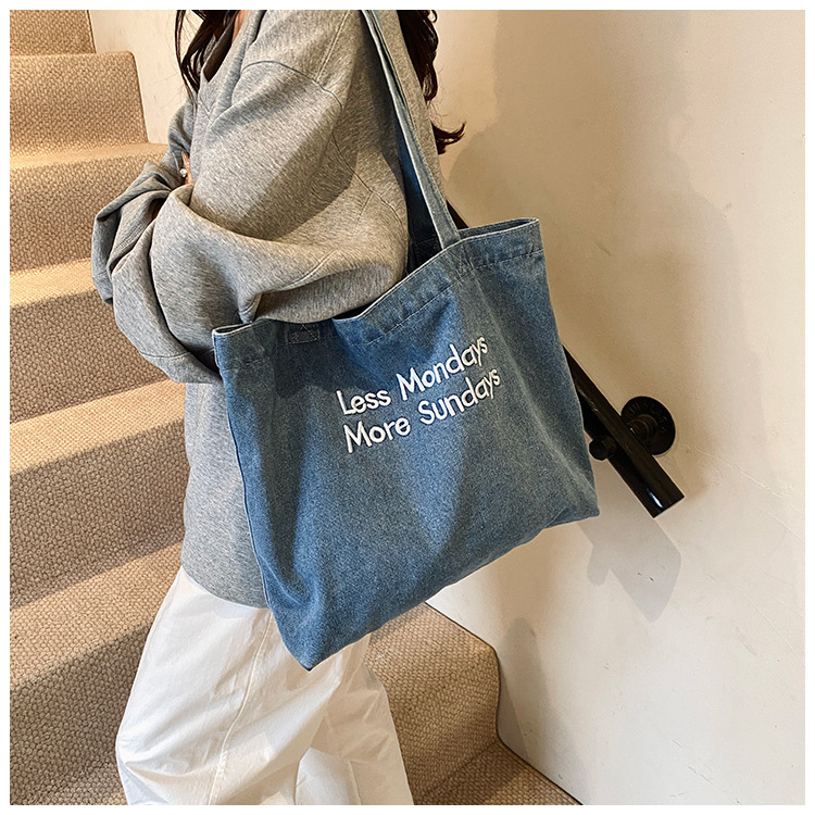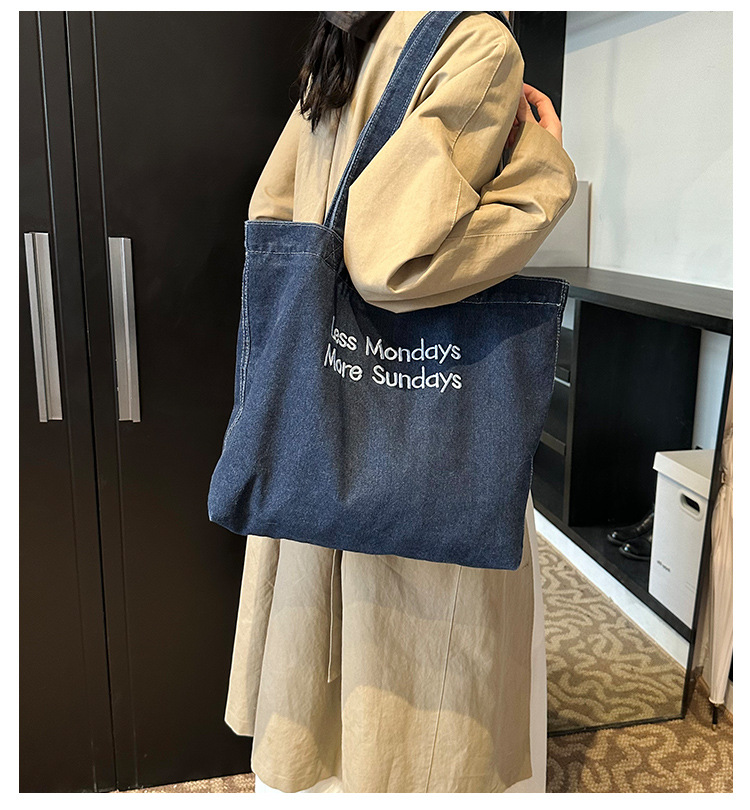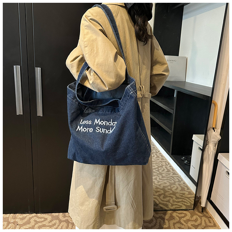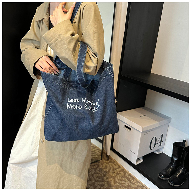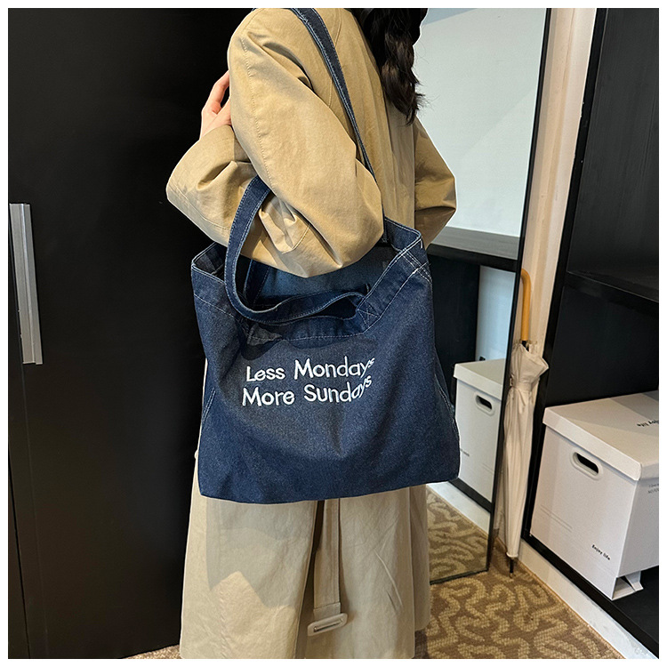 레트로 아메리칸 스타일 데님 캔버스 백, 대용량 자수 숄더백, 출퇴근용 다용도 학생용 핸드백스토어 가기