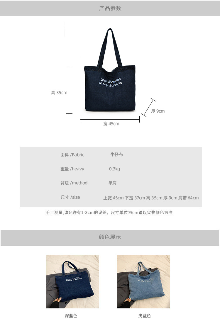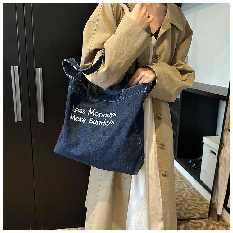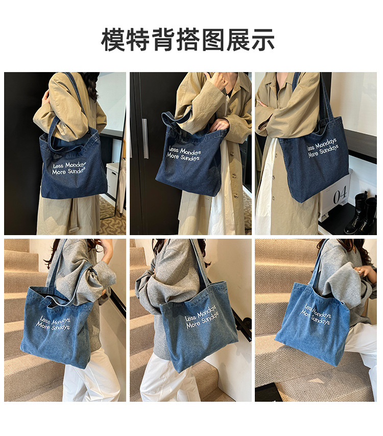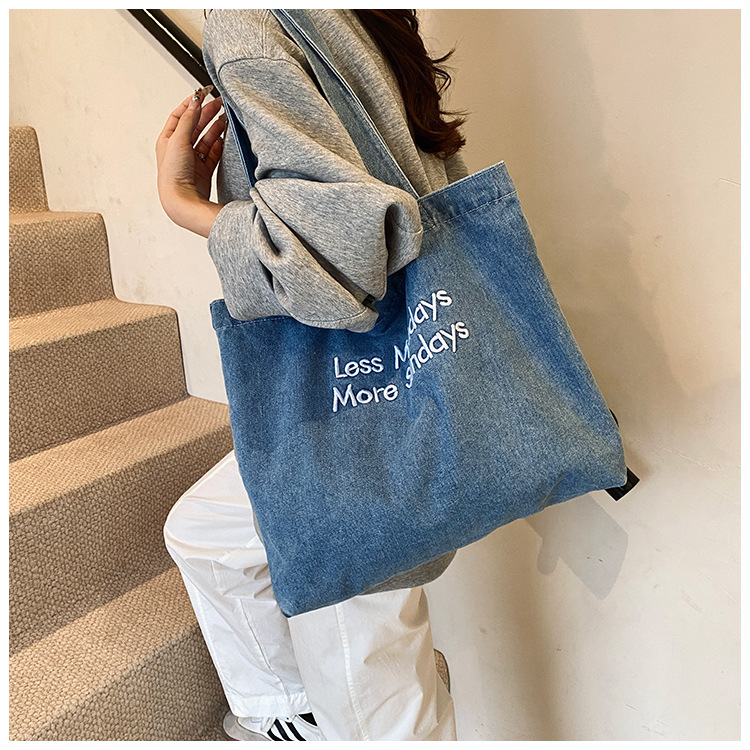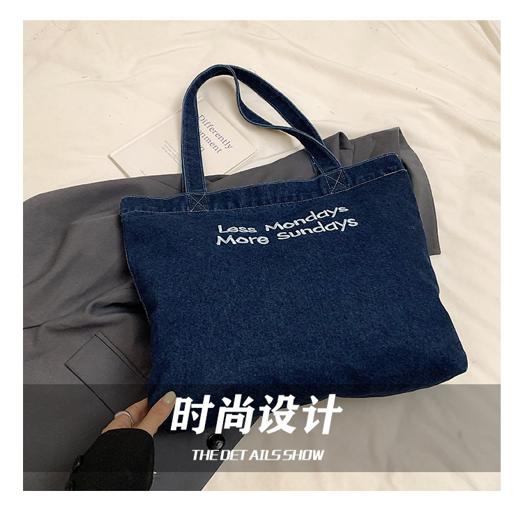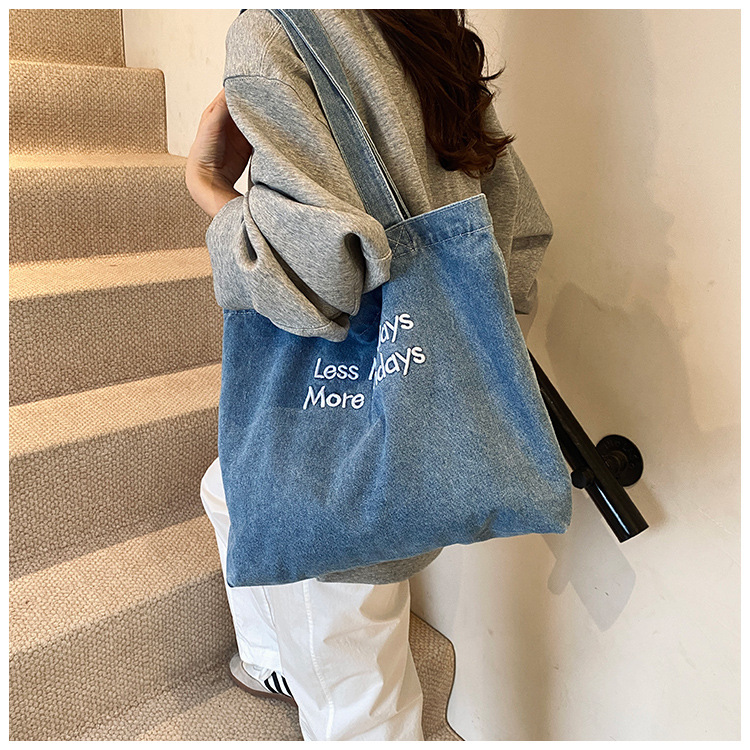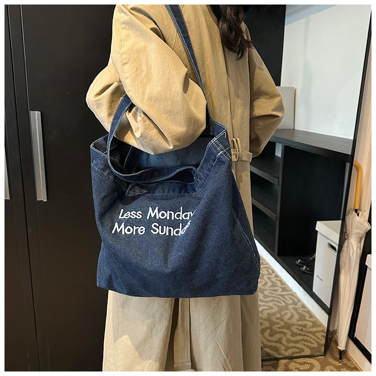 레트로 아메리칸 스타일 데님 캔버스 백, 대용량 자수 숄더백, 출퇴근용 다용도 학생용 핸드백스토어 가기
