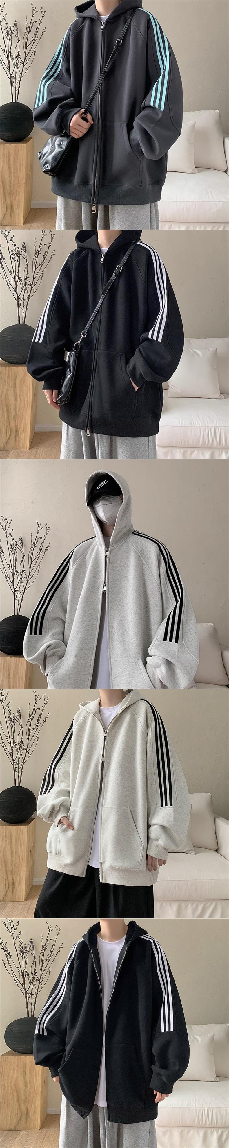 아메리칸 레트로 3 바 후드 카디건 스웨터 남성 봄과 가을 패션 브랜드 디자인 센스 루즈 캐주얼 스포츠 자켓스토어 가기