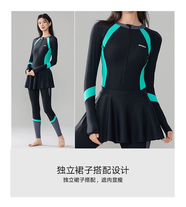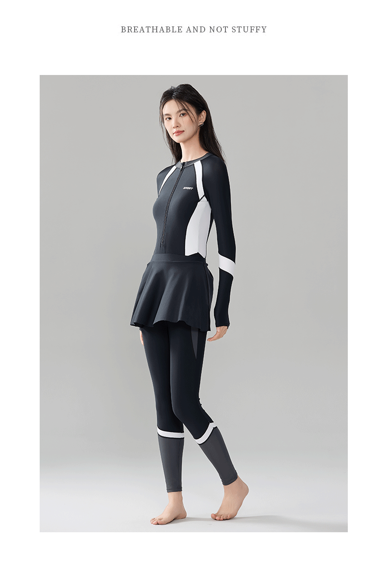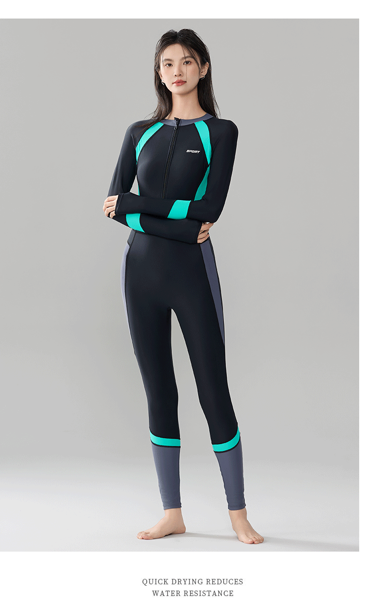 여성용 긴팔 긴팔 바지 전신 태양 보호 및 벨리 커버 슬리밍 보수적 온천 올인원 훈련 다이빙 세트스토어 가기