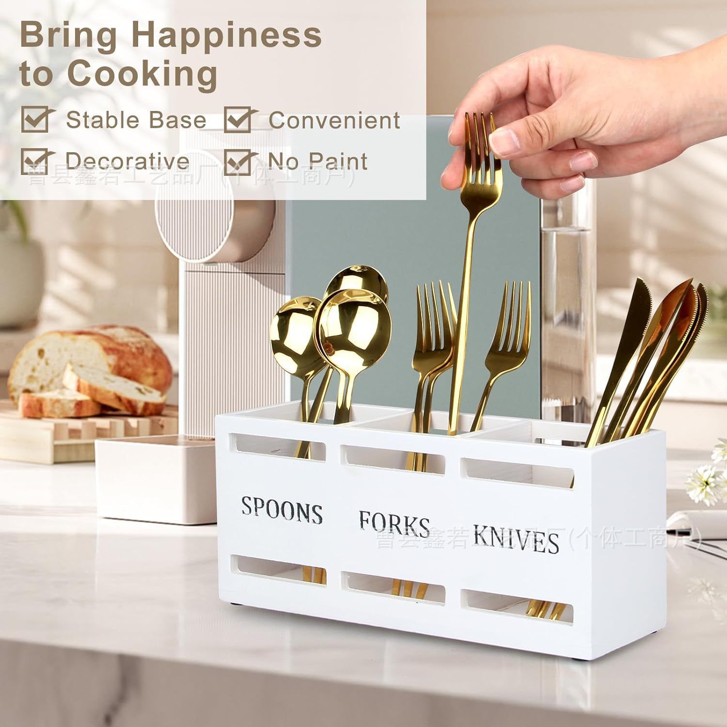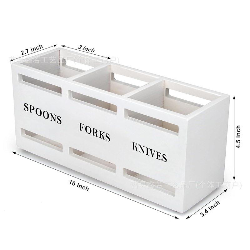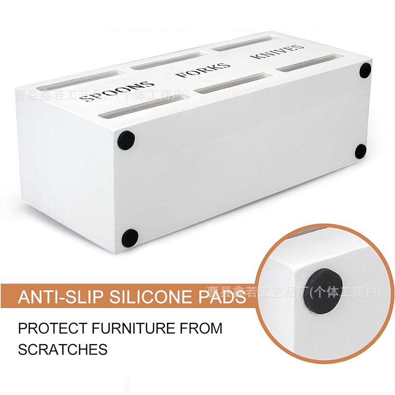 단단한 나무 식기 저장 상자 멀티 그리드 나이프와 포크 분류 상자 나무 저장 상자 간단한 흰색 주방 식기 Flating 상자스토어 가기