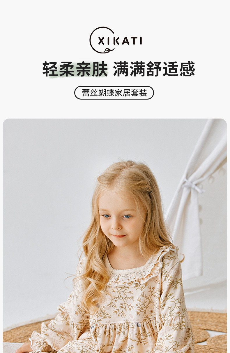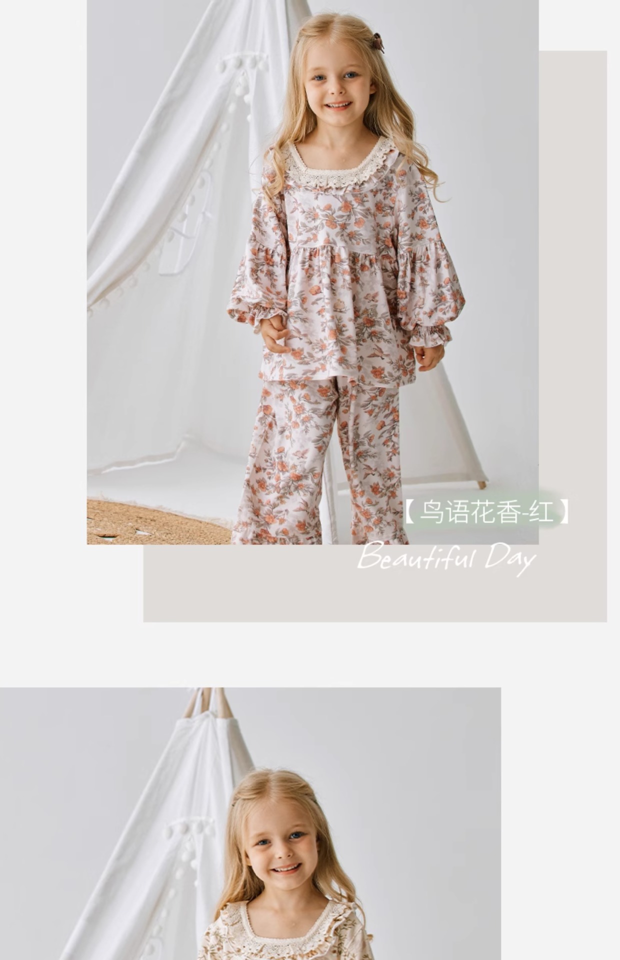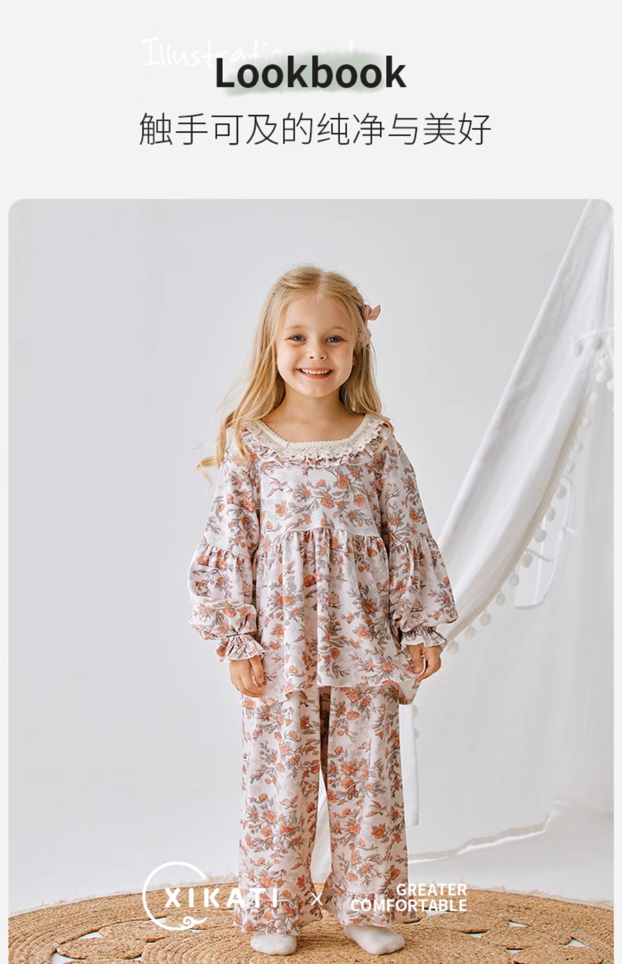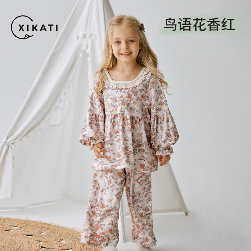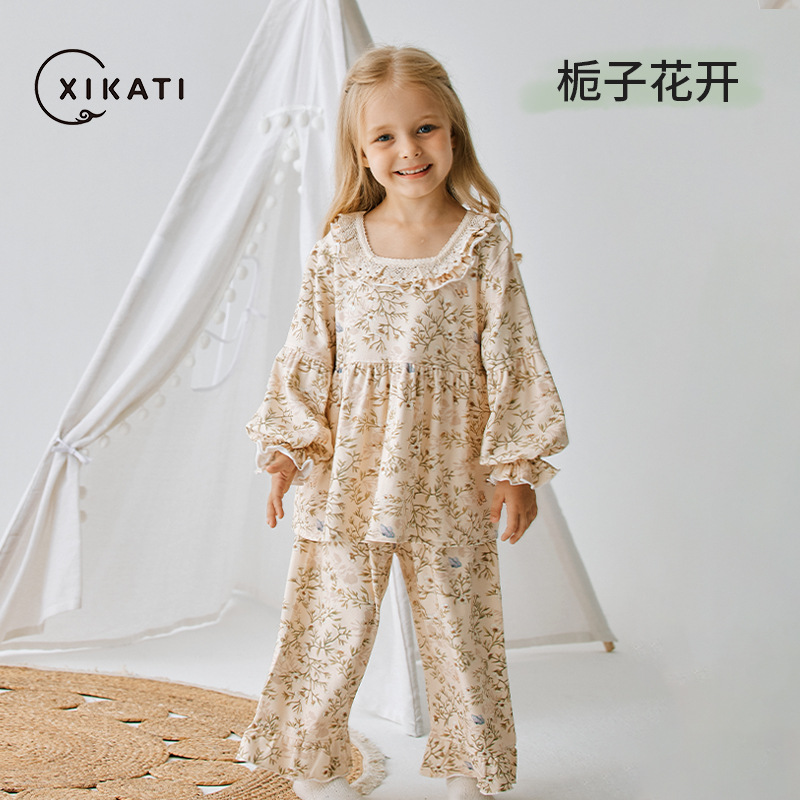 Xikati Girls 'Pajamas 2024 새로운 아기 클래스 가을과 겨울 긴 소매 소녀 홈 의류 세트