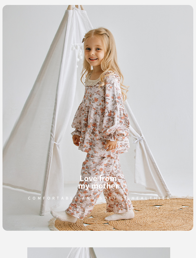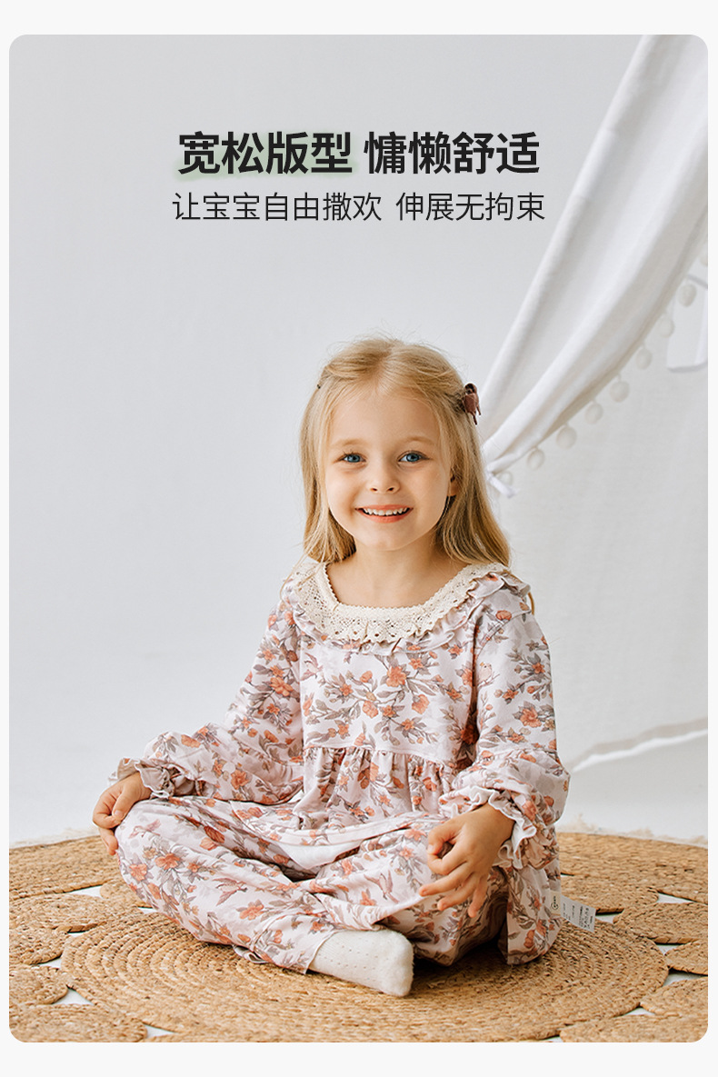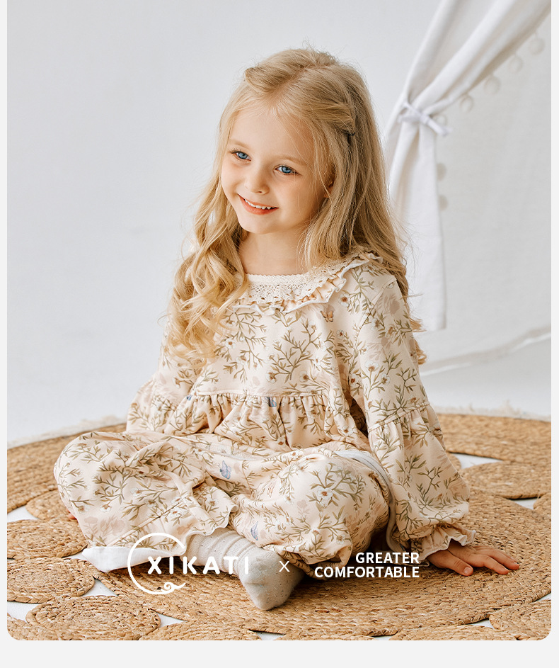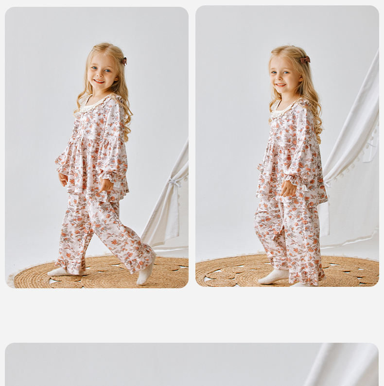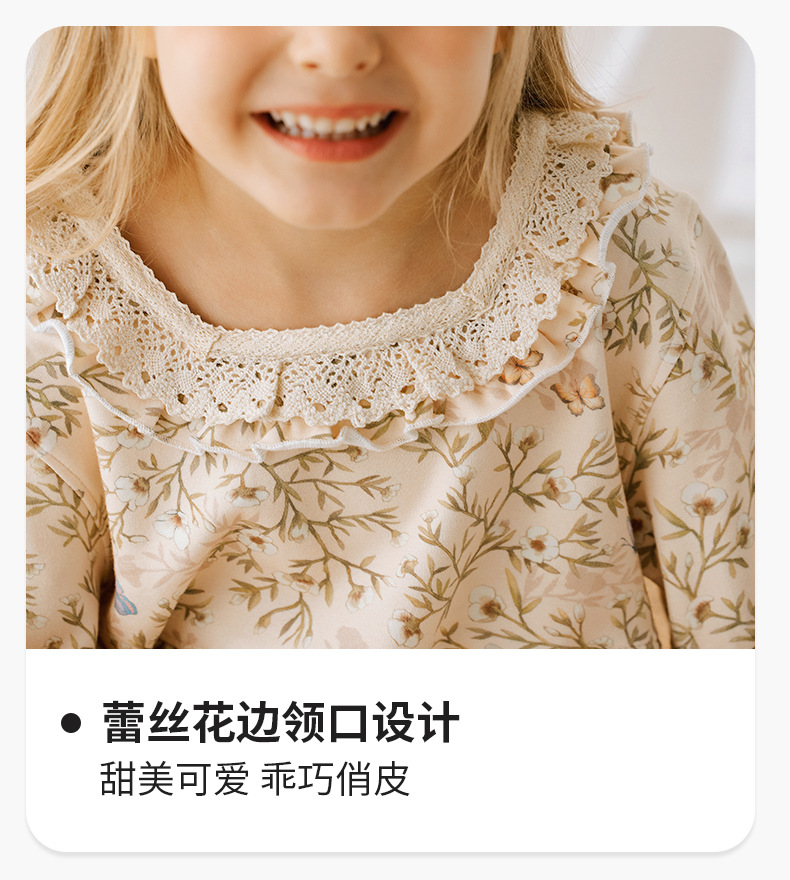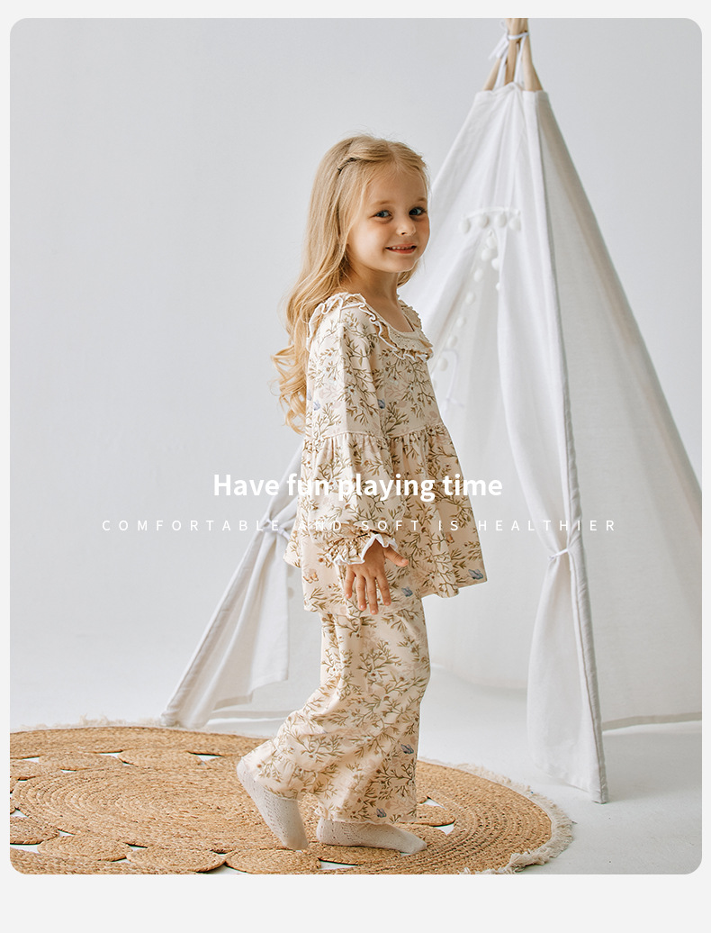 Xikati Girls 'Pajamas 2024 새로운 아기 클래스 가을과 겨울 긴 소매 소녀 홈 의류 세트