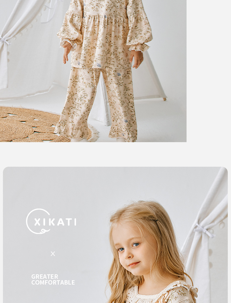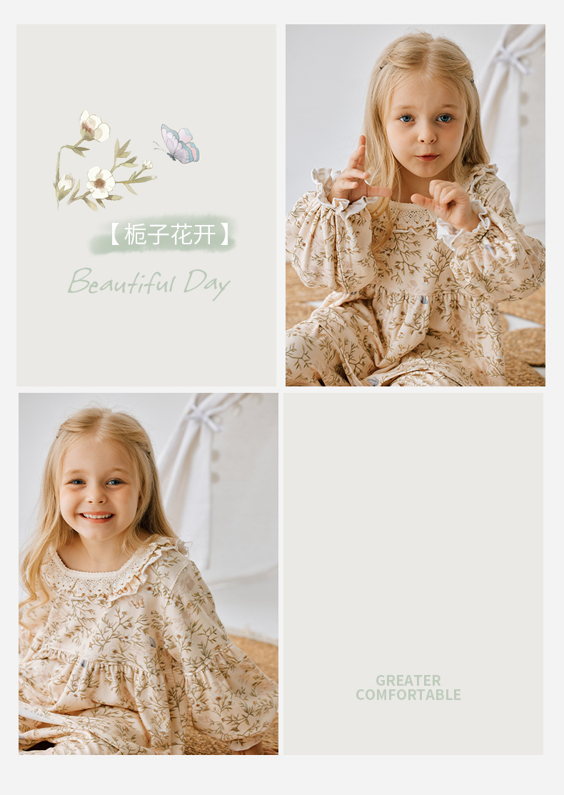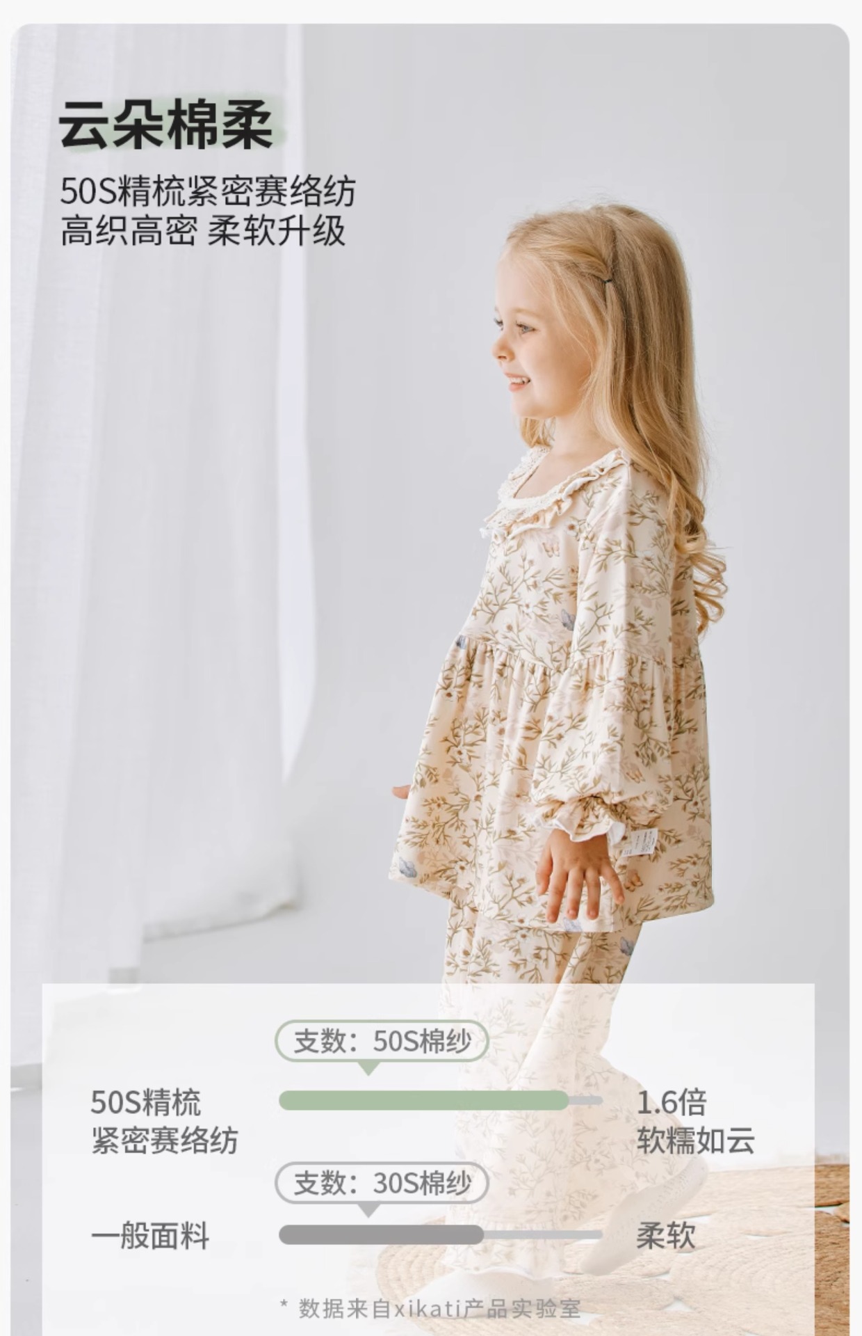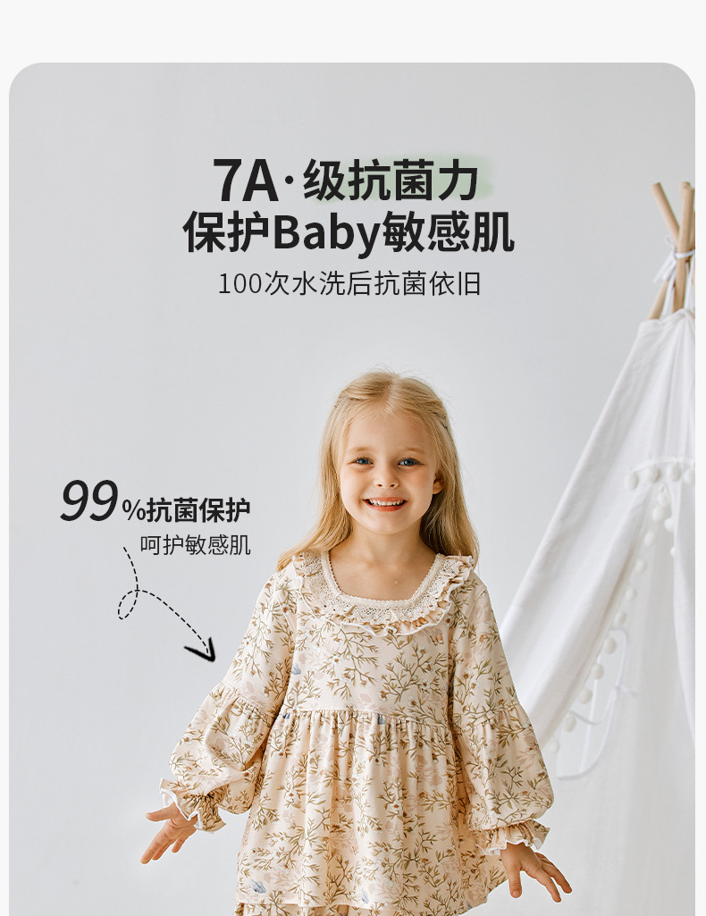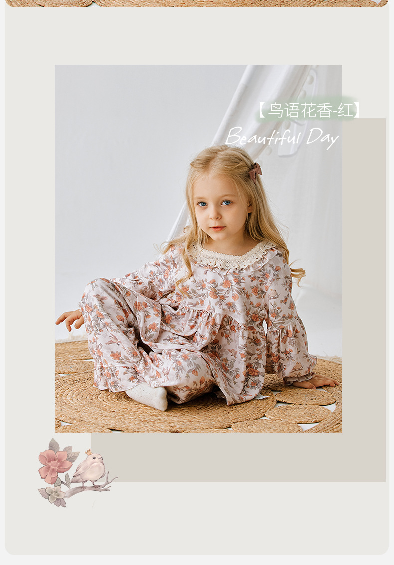 Xikati Girls 'Pajamas 2024 새로운 아기 클래스 가을과 겨울 긴 소매 소녀 홈 의류 세트