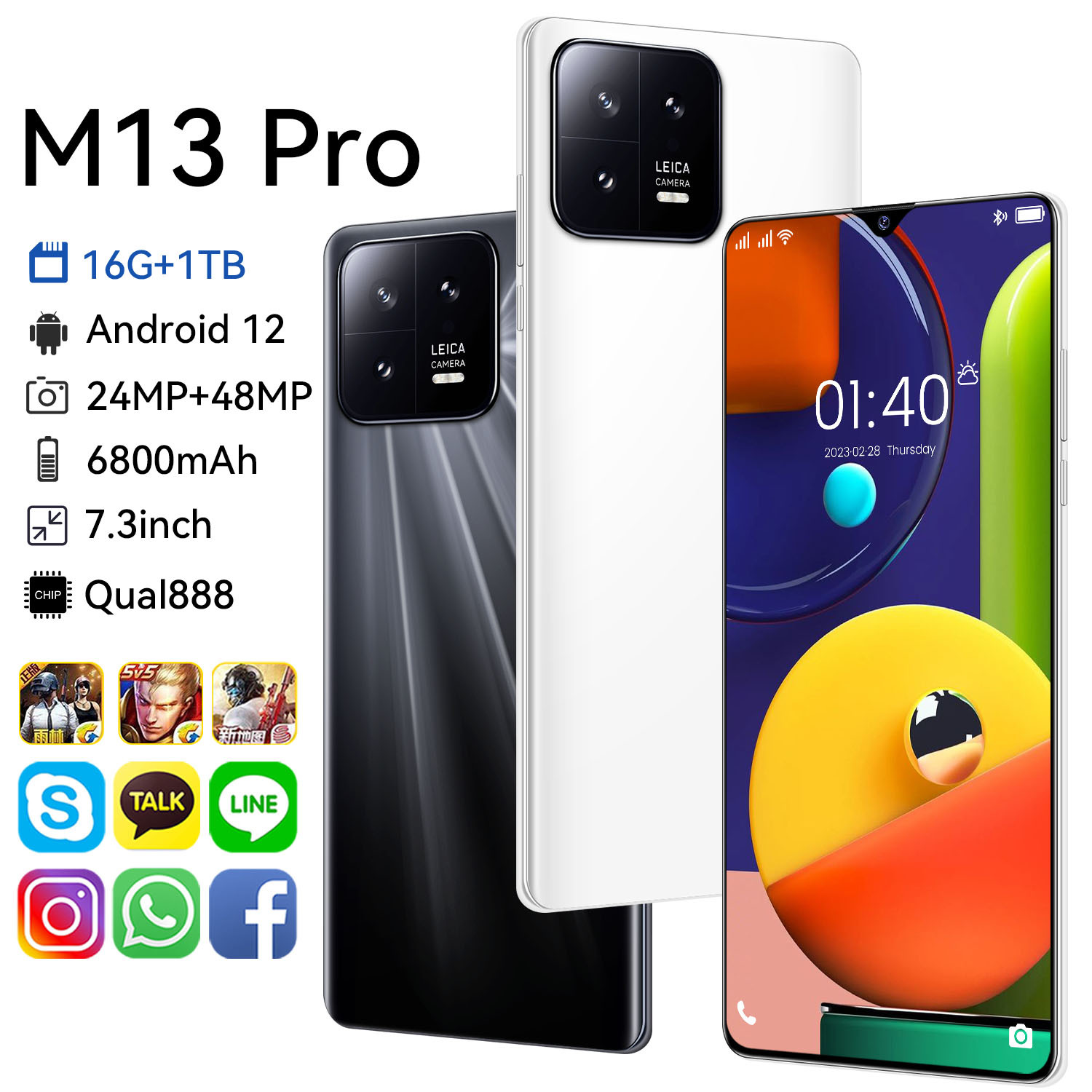 크로스보더 M13PRO 휴대폰, 새로운 안드로이드 스마트폰, 고화질 6.5인치 대화면, Shopee 해외 직배송, 듀얼심 듀얼모드