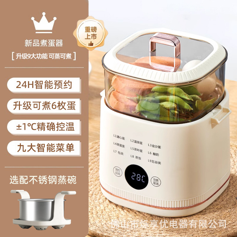 새로운 계란찜기, 가정용 아침식사 기계, 계란찜과 계란찜케이크를 위한 타이머 예약 기능, 기숙사용 다기능 소형 계란찜기