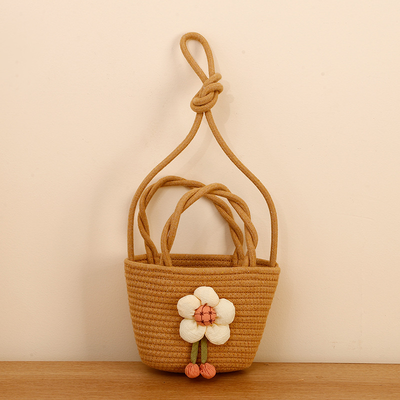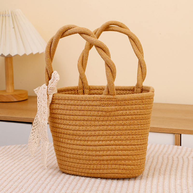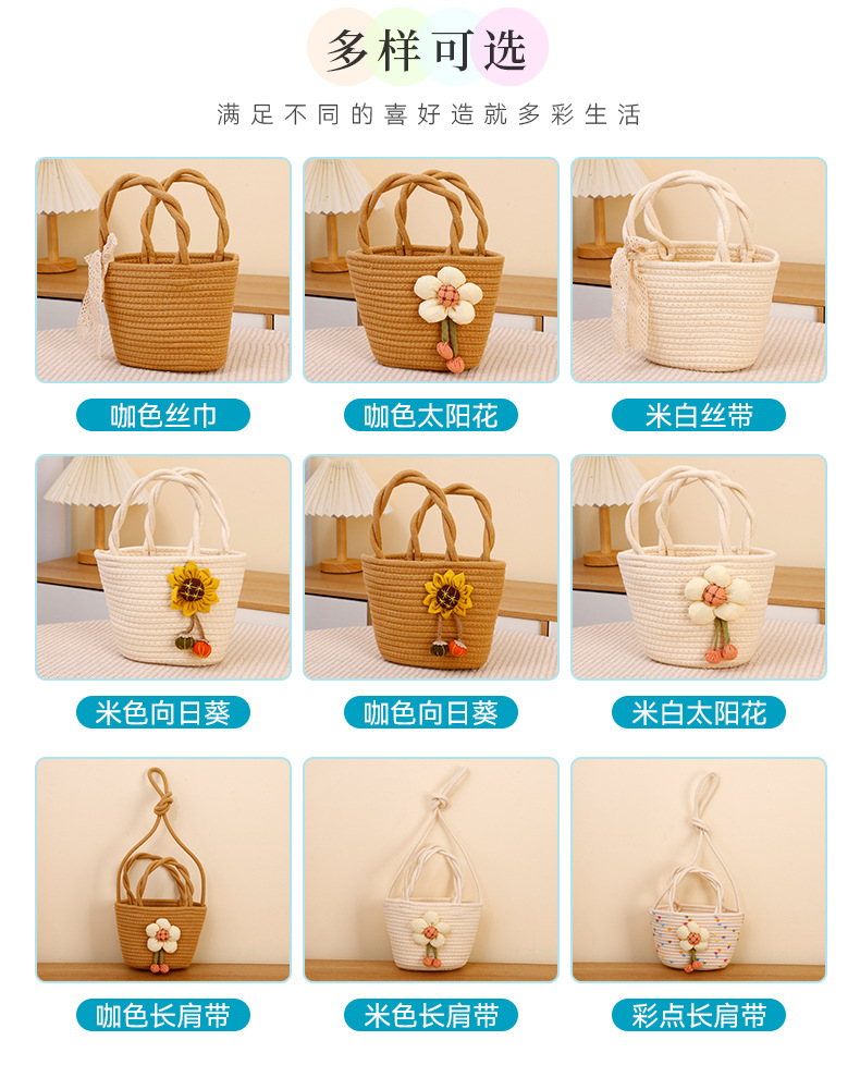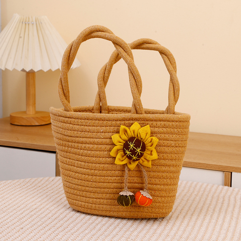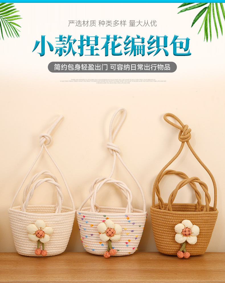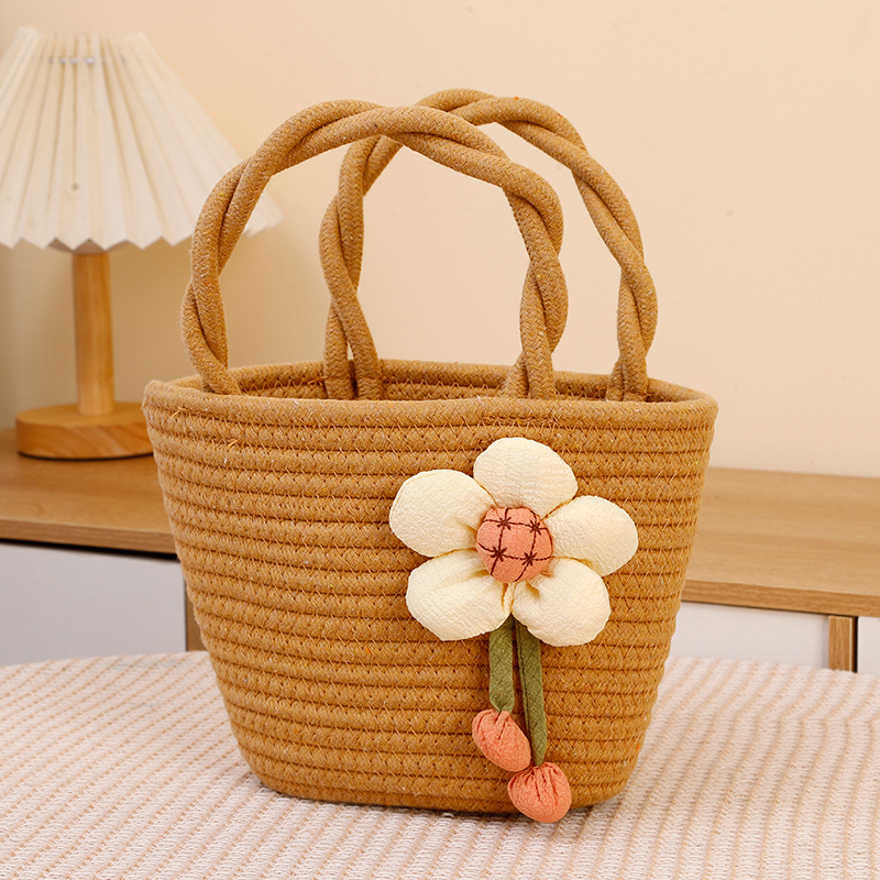 2026년 신형 소형 꽃무늬 뜨개질 가방 수제 미니 토트백 면사 뜨개질 가방 제조업체 도매
