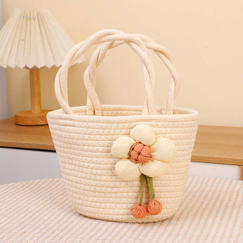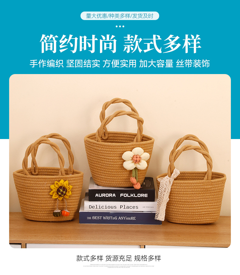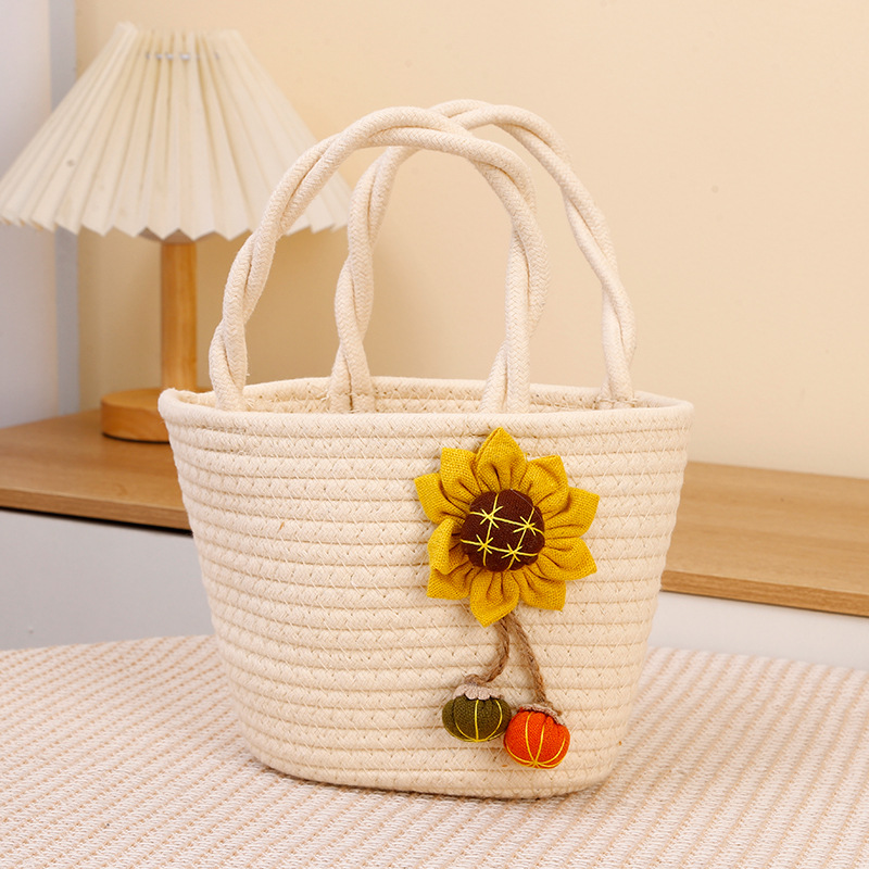 2026년 신형 소형 꽃무늬 뜨개질 가방 수제 미니 토트백 면사 뜨개질 가방 제조업체 도매스토어 가기
