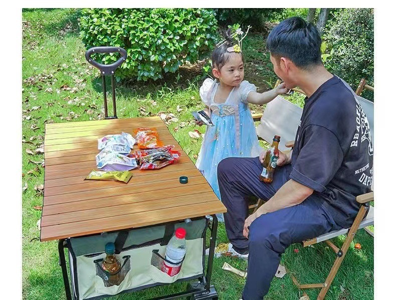 • 카키 [더블 레이어 900D 옥스포드 천] - 대형 / 8inch 베어링 고무 바퀴 + 나뭇결 접이식 테이블