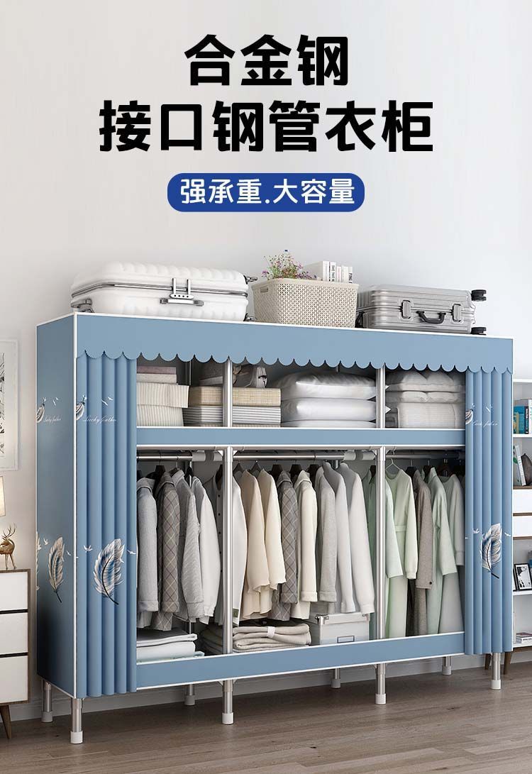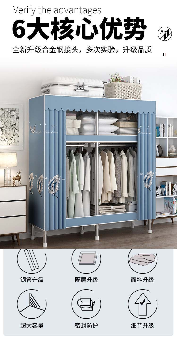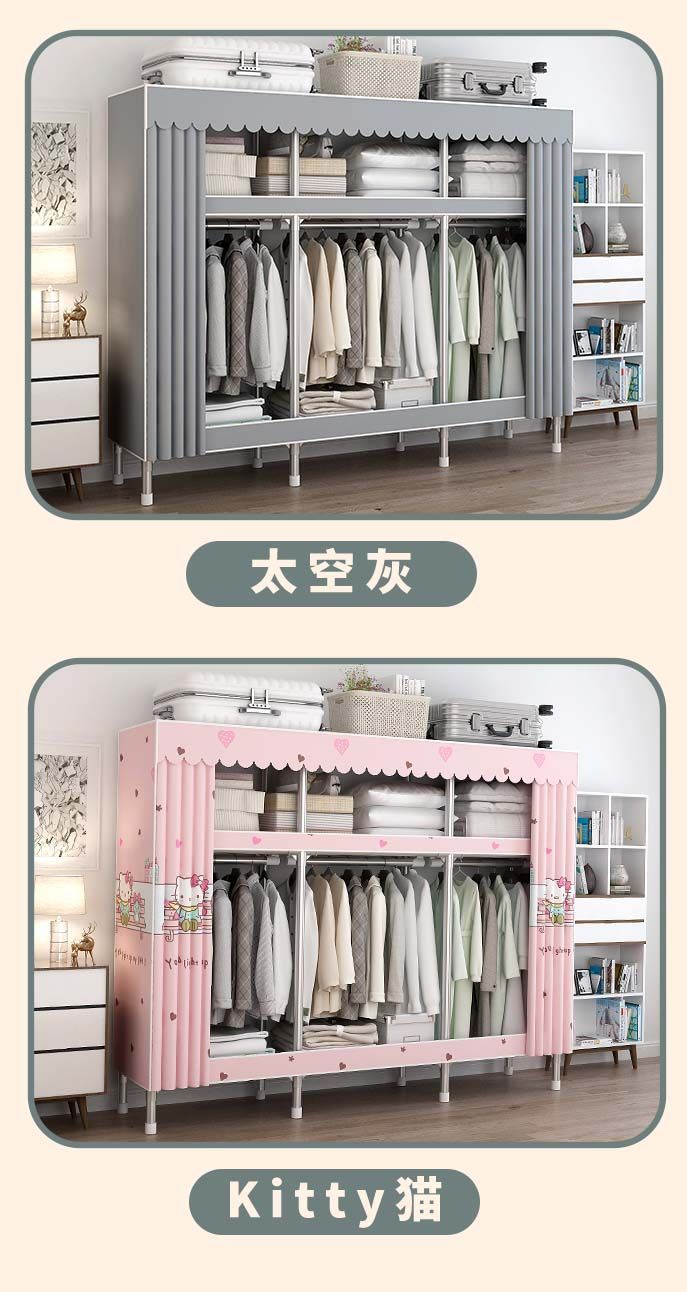 26mm 천제 옷장, 침실용 가정용 간이 옷장, 임대주택용, 전체 스틸 프레임 옷장, 조립식, 소형 아파트용스토어 가기