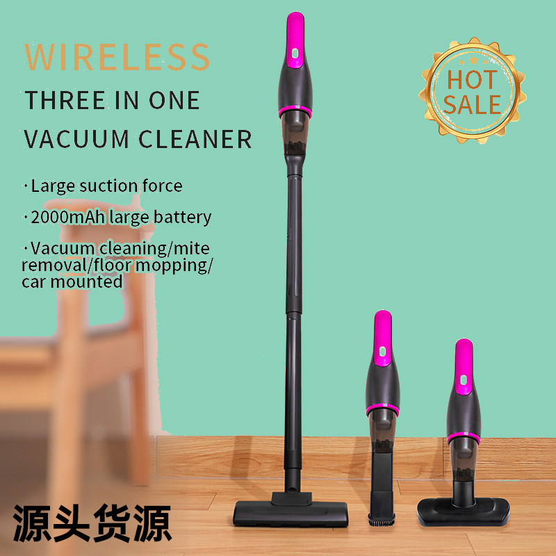 跨境新品无线手持吸尘器带地刷吸拖一体吸毛三合一车载家用除螨仪