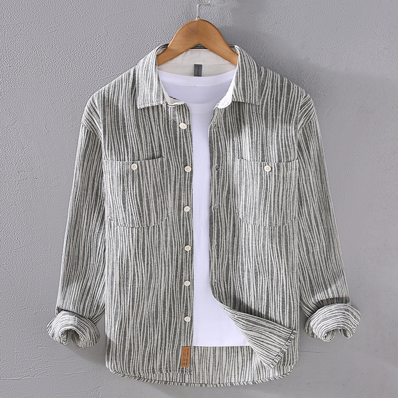 남성용 줄무늬 셔츠 긴팔 가을 퓨어 코튼 캐주얼 루즈 패션 트렌디 한 일본 빈티지 작업복 셔츠 재킷