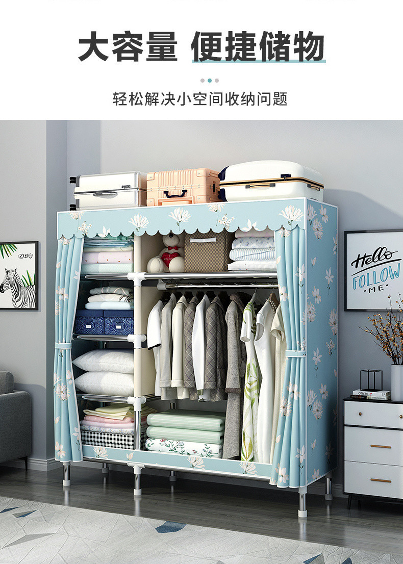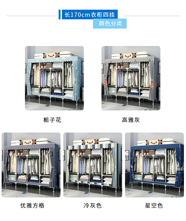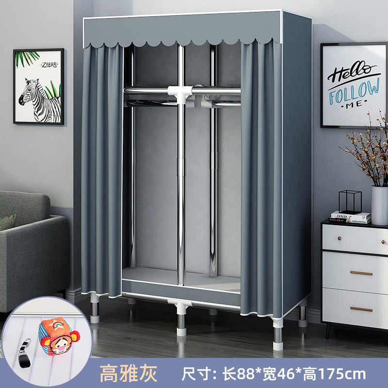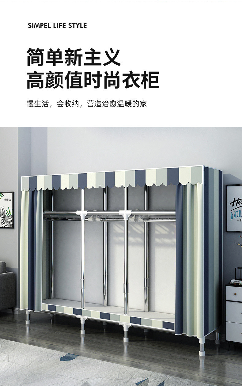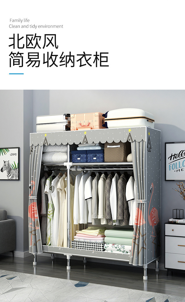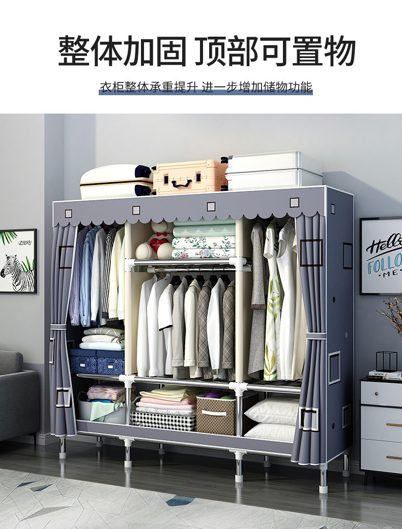 FLE 간단한 옷장 홈 침실 조립 강철 파이프 굵은 천 옷장 임대 방 강하고 튼튼한 강철 프레임 두껍게스토어 가기