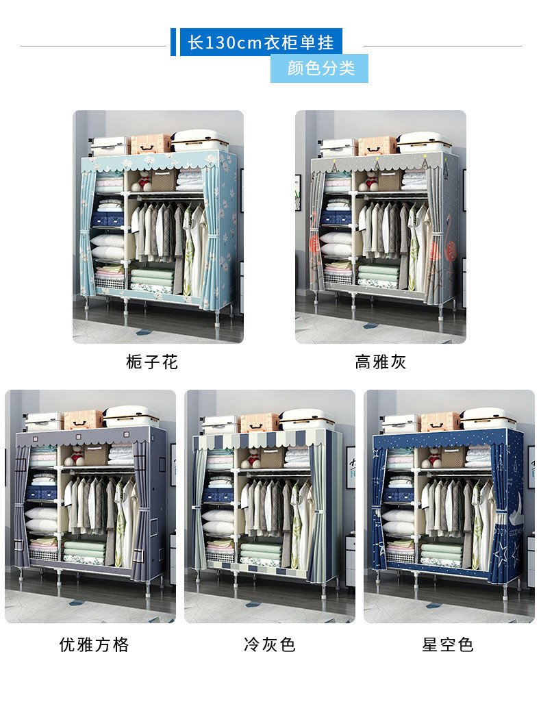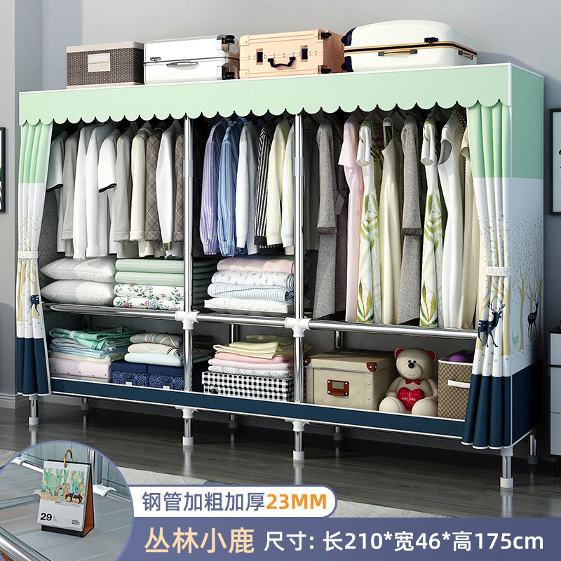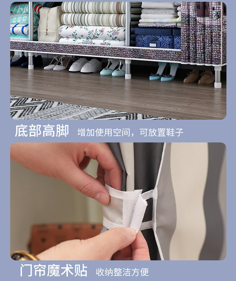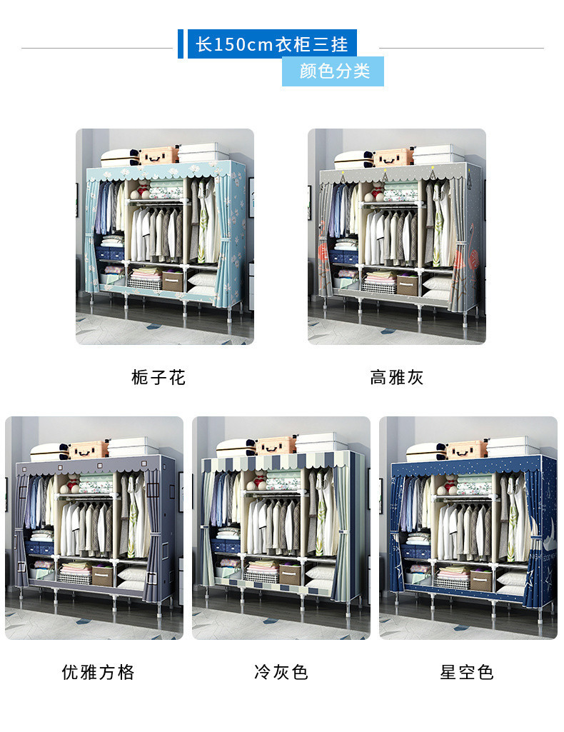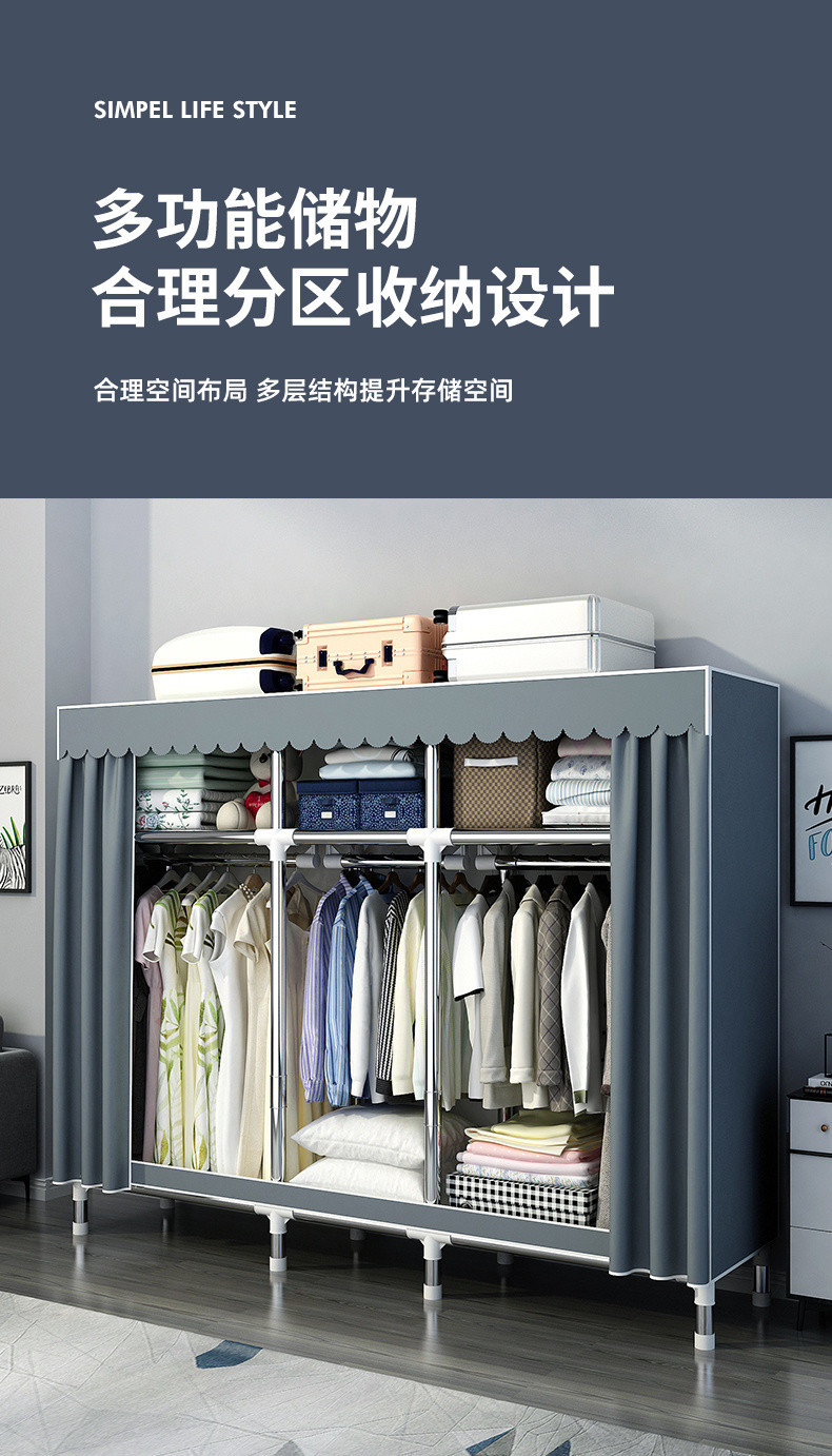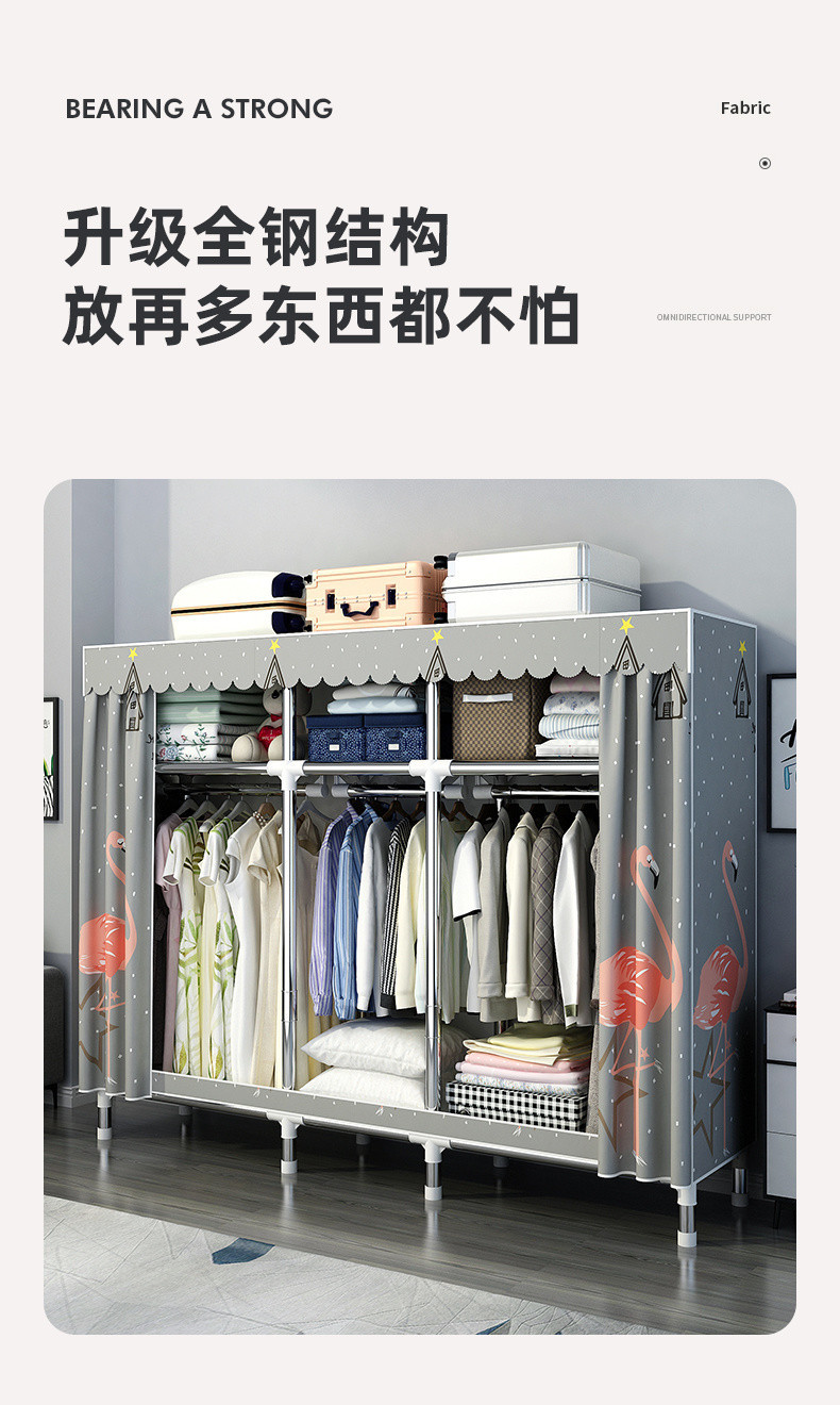 FLE 간단한 옷장 홈 침실 조립 강철 파이프 굵은 천 옷장 임대 방 강하고 튼튼한 강철 프레임 두껍게스토어 가기