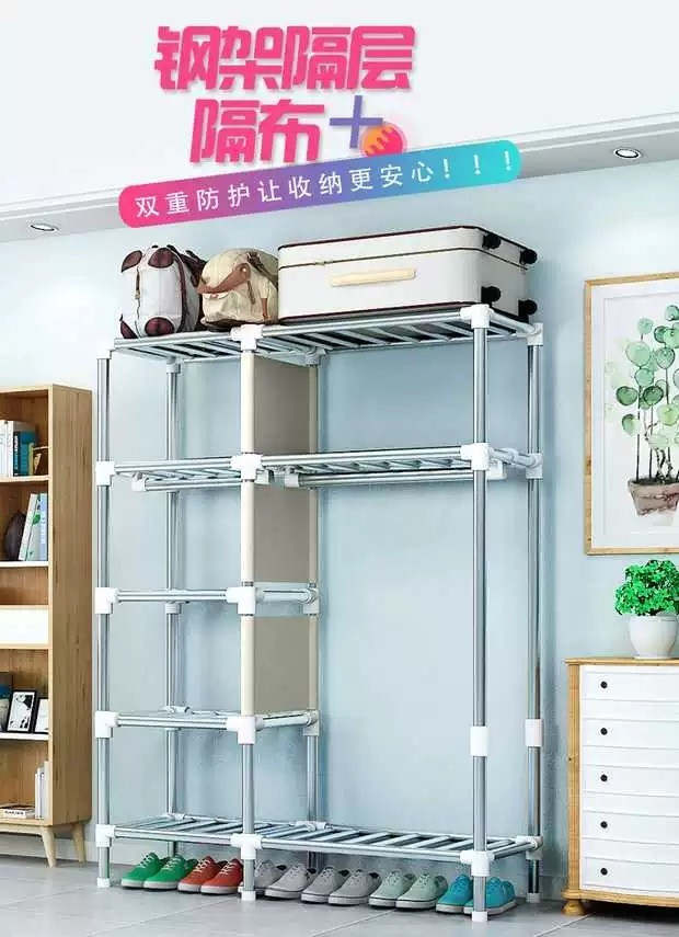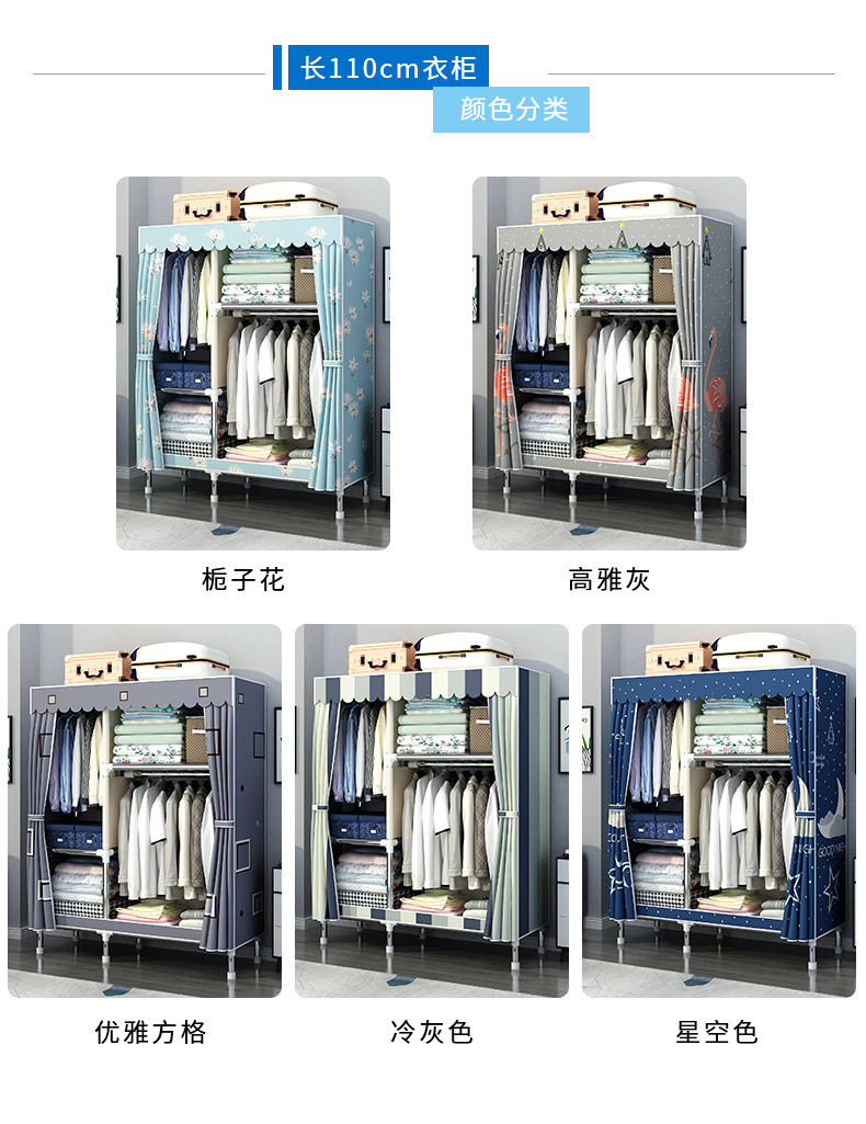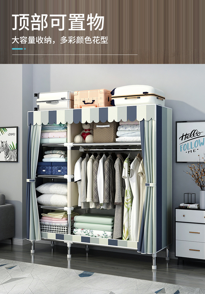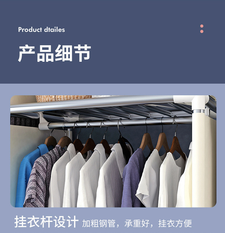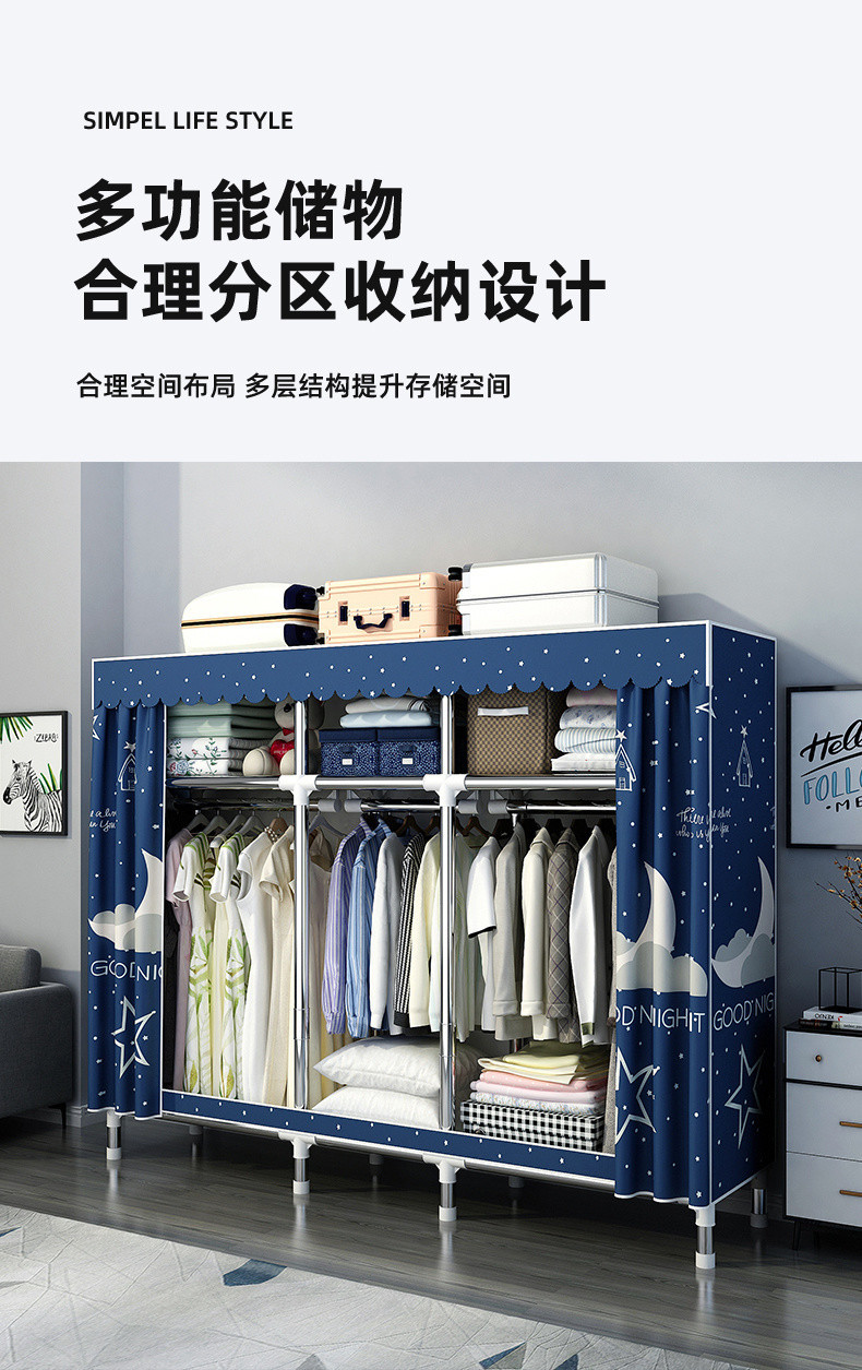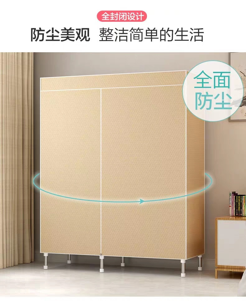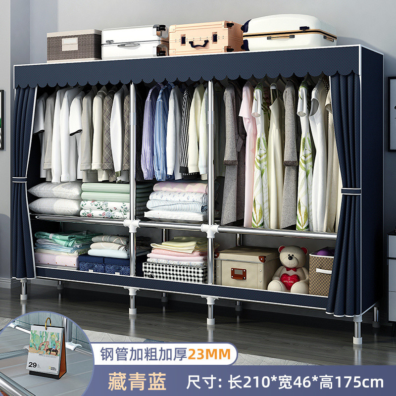 FLE 간단한 옷장 홈 침실 조립 강철 파이프 굵은 천 옷장 임대 방 강하고 튼튼한 강철 프레임 두껍게스토어 가기
